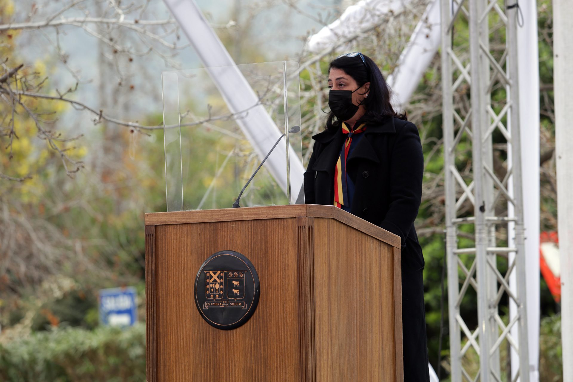 Por último, Katherine Valderrama López, de la carrera Ingeniería en Aviación Comercial, se dirigió a sus compañeros y autoridades, agradeciendo principalmente el esfuerzo de la Universidad por llevar a cabo esta ceremonia de manera presencial.