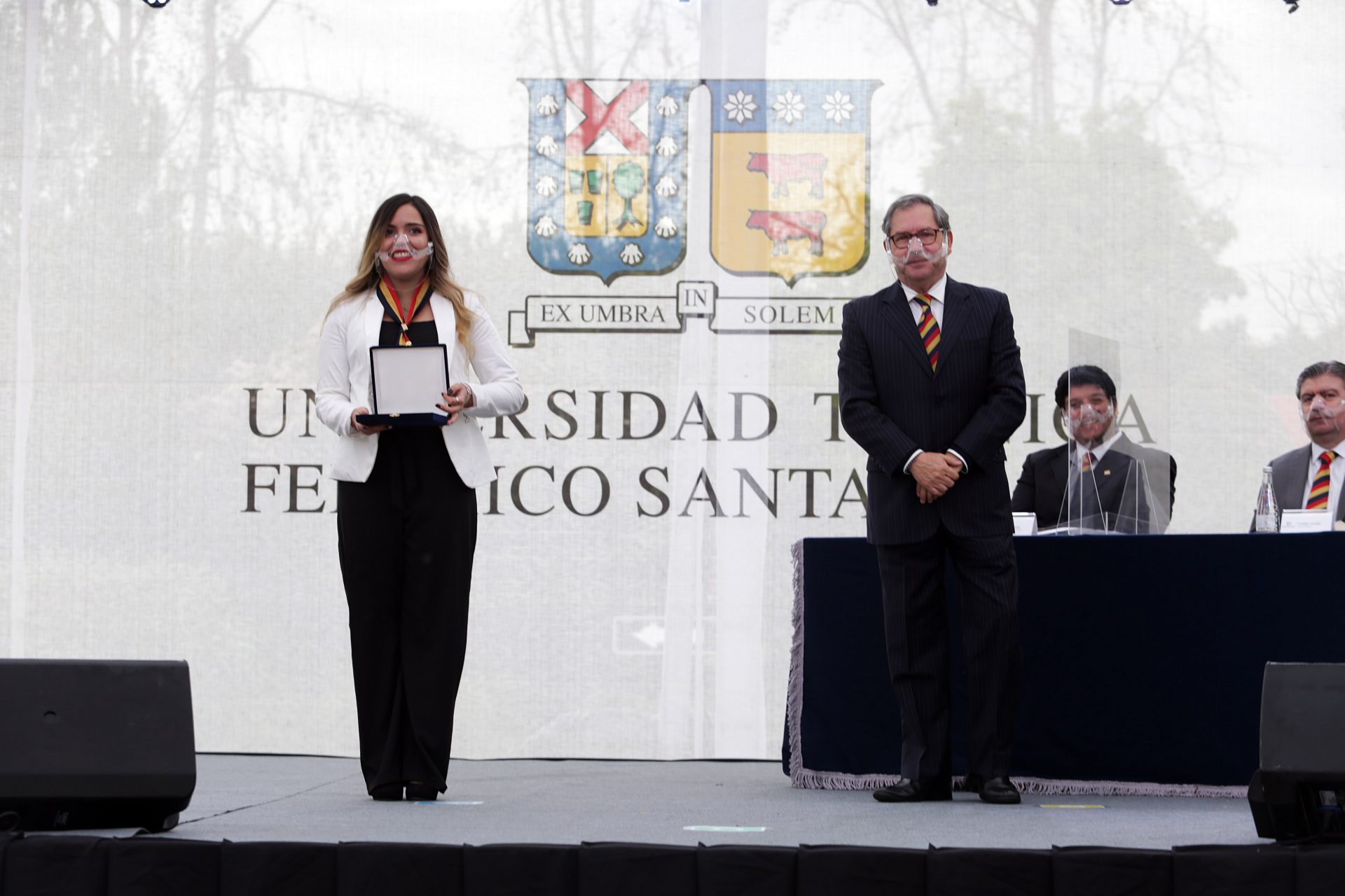 También se refirió a la exigencia y la educación de excelencia entregada por la USM: “La estadía en esta universidad ha sido un constante desafío que pone a prueba la capacidad de perseverar y el hecho de que estemos hoy acá da cuenta de que pudimos con todo eso y que al final del día somos personas resilientes”, señaló.