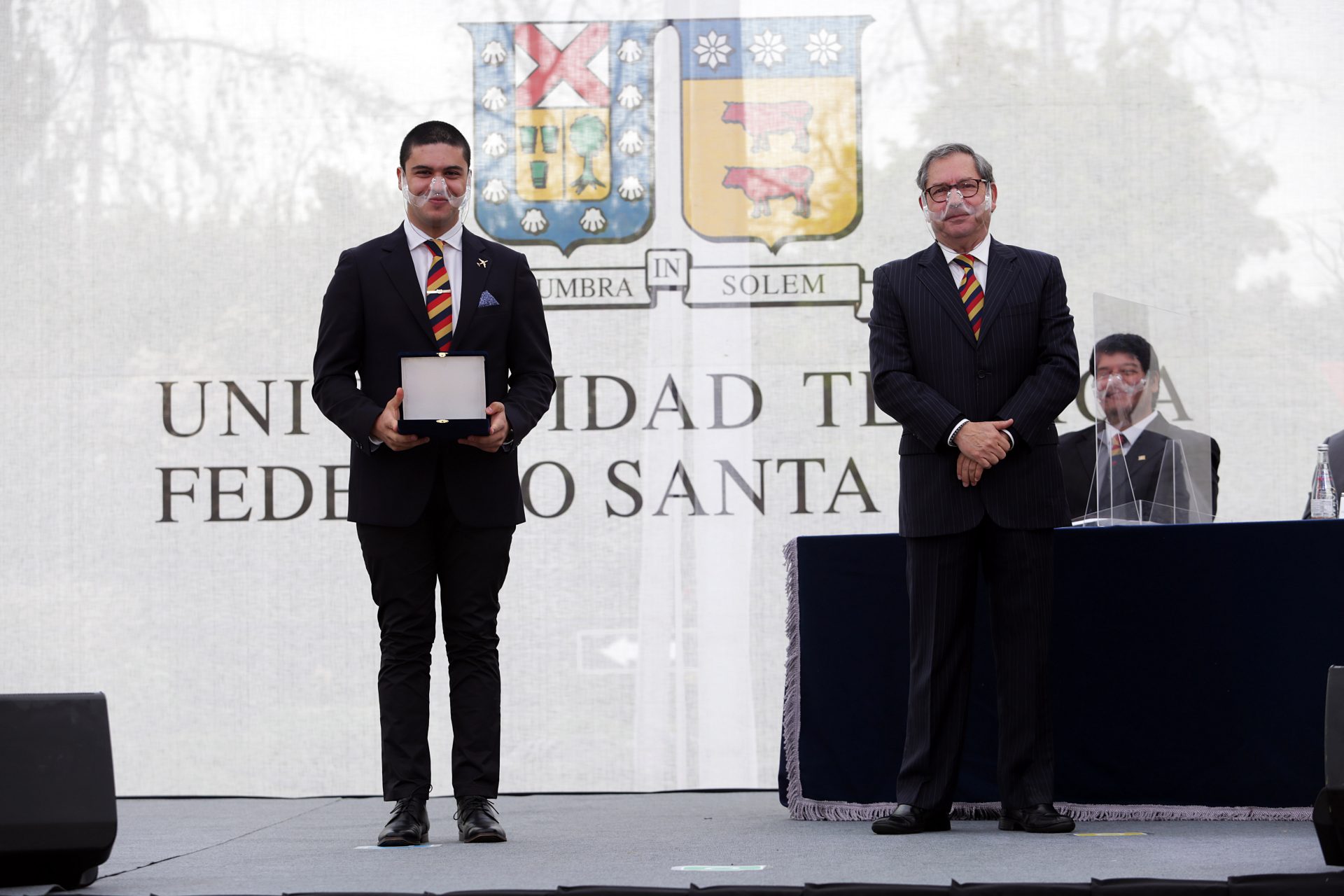 “Estoy seguro que donde quiera que se desempeñen, tendrán un sello sansano que los distinguirá y les permitirá lograr sus metas y sueños. Deben, con orgullo, ser exalumnos de la Universidad Técnica Federico Santa María. Ustedes se convierten, a partir de hoy, en nuestros embajadores, para que futuras generaciones de estudiantes que quieran ingresar al mundo aeroespacial, se interesen y nos prefieran”, agregó.