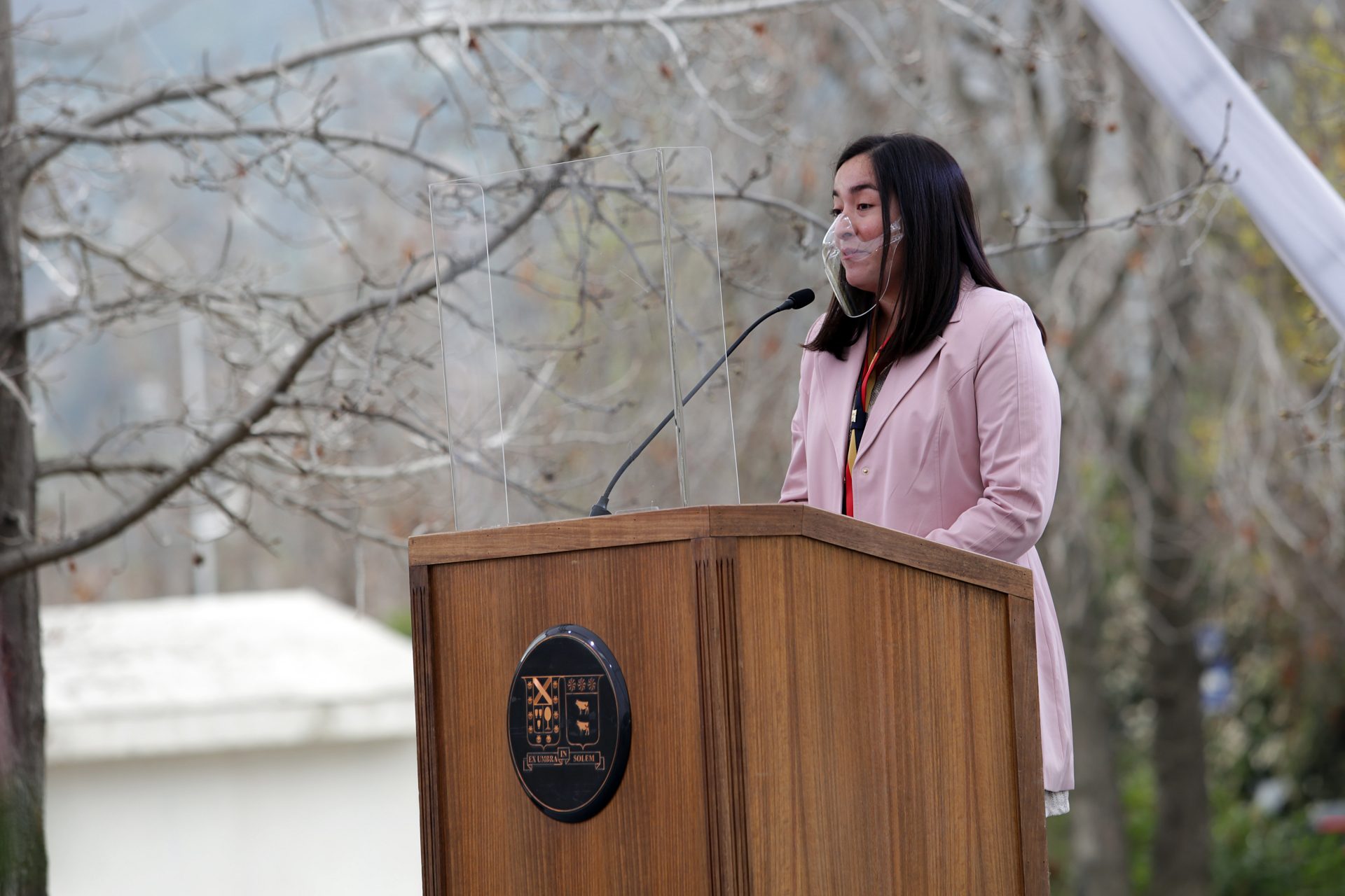 Además, añadió su agradecimiento a la Universidad, “por todas las oportunidades para desarrollarnos, más allá de lo académico. Instancias como participar en el equipo de promoción universitaria, realizar alguna ayudantía, trabajo de apoyo en las actividades por departamento, participar en los procesos de postulaciones y matrículas de los alumnos de primer año, ser tutor o trabajar en la biblioteca; participar en los talleres que se realizan en el bloque protegido, son una oportunidad de desarrollar habilidades blandas y crear redes de contacto que sin duda nos servirán a futuro”.