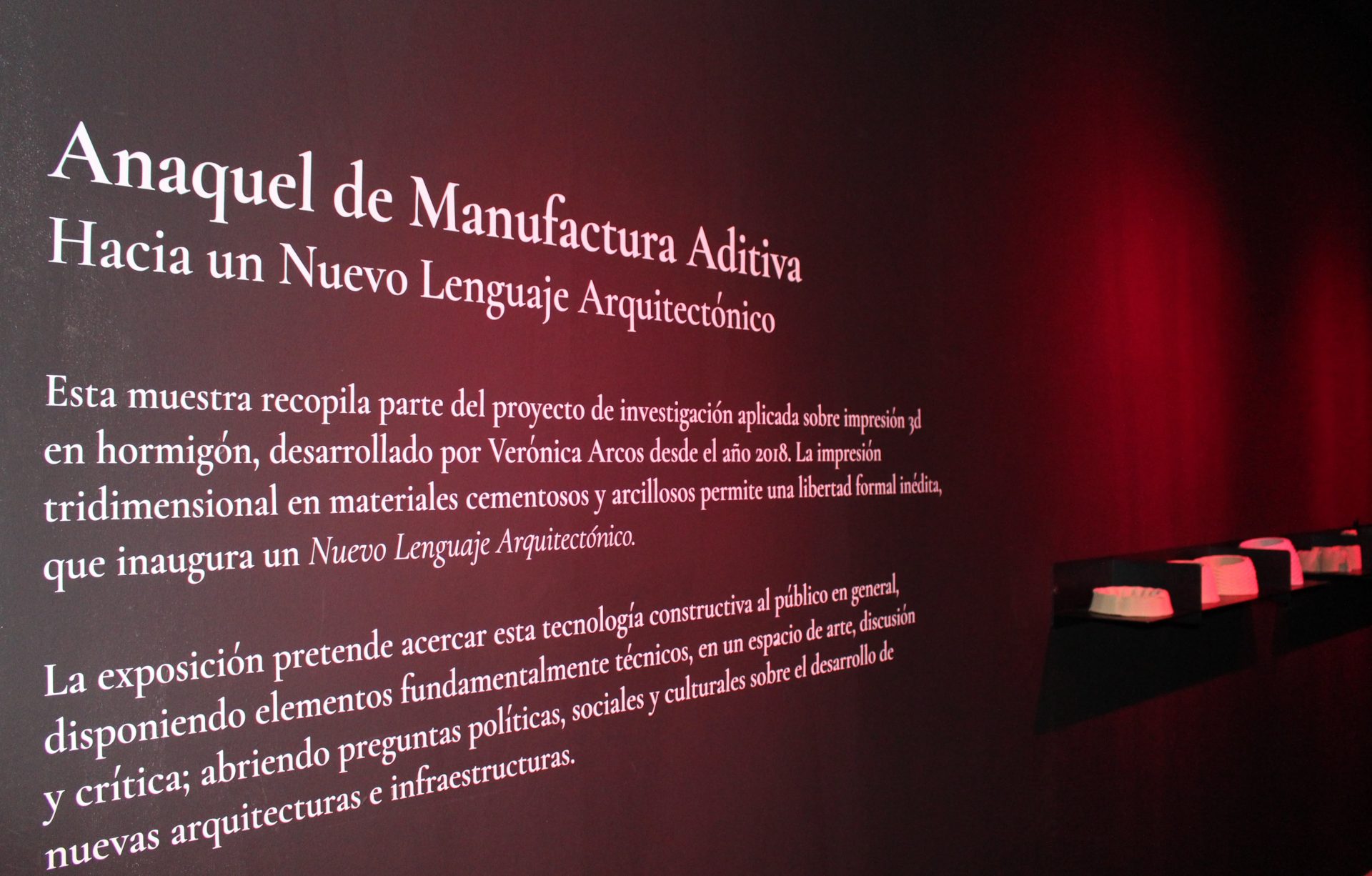 Esta investigación, que cuenta con patrocinios públicos y privados –incluyendo un financiamiento del Fondo Nacional de Desarrollo Cultural y de las Artes (FONDART) 2021–, tiene por finalidad aplicar la construcción con hormigón impreso a la vivienda social. Para ello, Arcos comenzó trabajando con pequeños modelos en materiales como arcilla y porcelana, que también están presentes en la exposición.