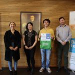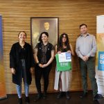 Los cuatro estudiantes elegidos como los ganadores del primer Concurso de Cuentos Breves USM participaron de un desayuno realizado en Campus San Joaquín, en el cual compartieron con los organizadores y el jurado del certamen.
