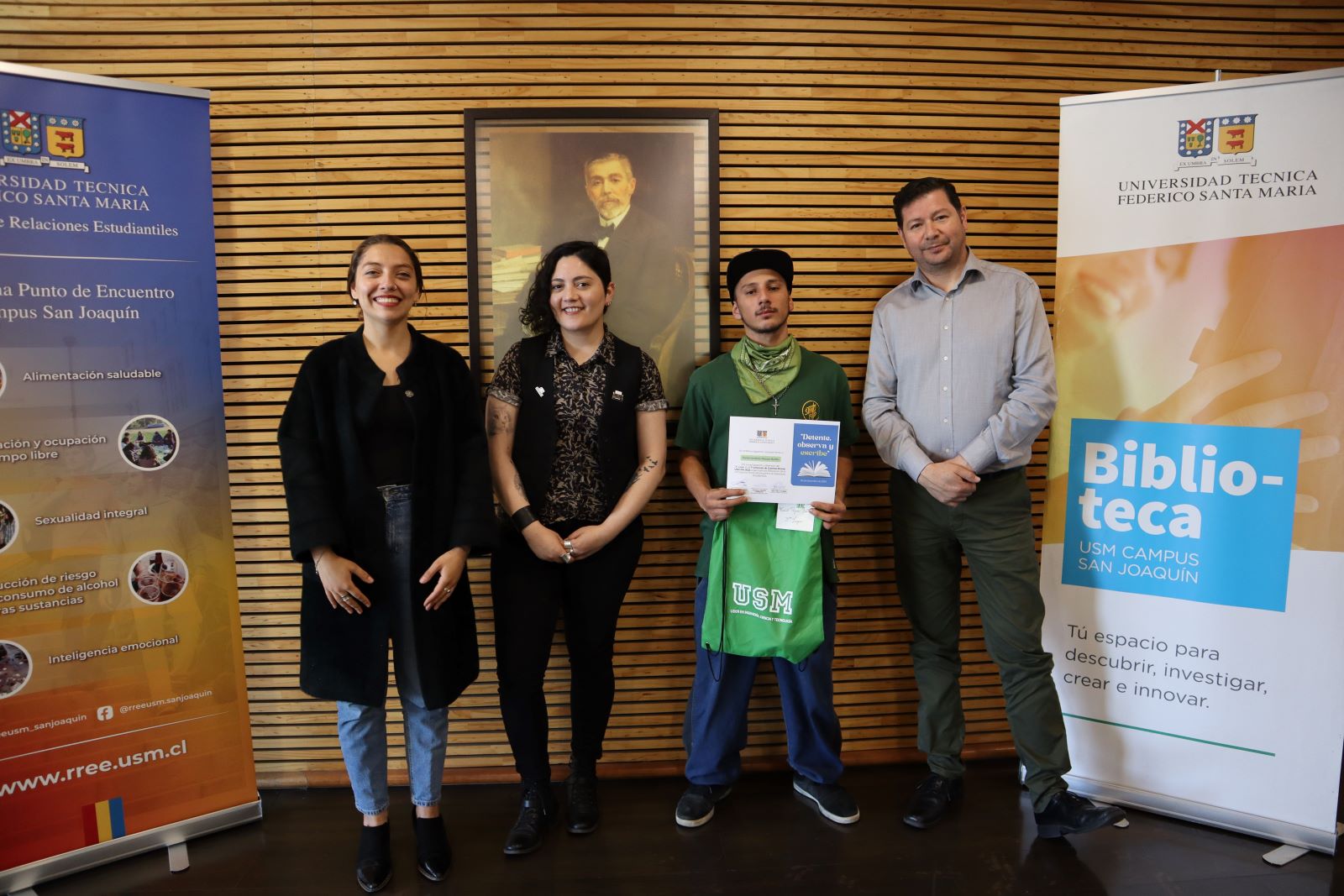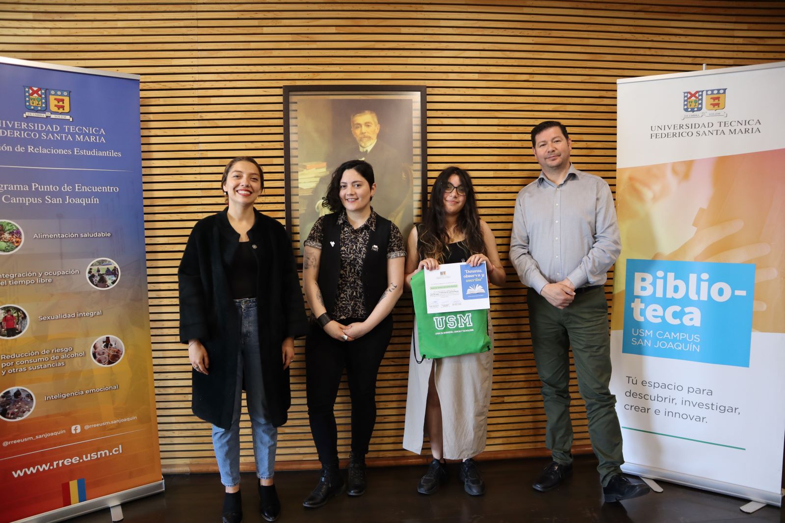 La actividad contó con la participación del jurado completo del concurso, compuesto por Claudio Tapia, director académico de Campus San Joaquín; Francisca Palacios, de Editorial USM, y Jean Véliz, editora de Sietch Ediciones, y los cuatro escritores sansanos ganadores: Joaquín García, de Ingeniería Civil Informática, quien obtuvo el primer lugar; Arantza Ormeño, de Ingeniería Civil Matemática, con el segundo lugar, y Farid Pezoa, de Arquitectura, e Ignacio Cabrera, de Licenciatura en Astrofísica, quienes fueron elegidos en el tercer lugar.