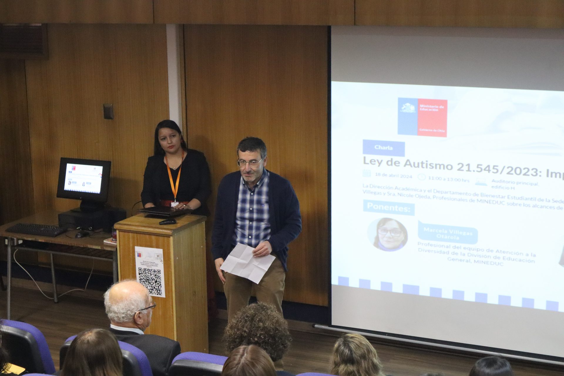 Organizada por la Dirección Académica y el Departamento de Bienestar Estudiantil de la Sede Viña del Mar, la ponencia contó con la presencia de Marcela Villegas y Nicole Ojeda, profesoras diferenciales y trabajadoras del Mineduc quienes expusieron ante diversas autoridades académicas y administrativas de la casa de estudios.