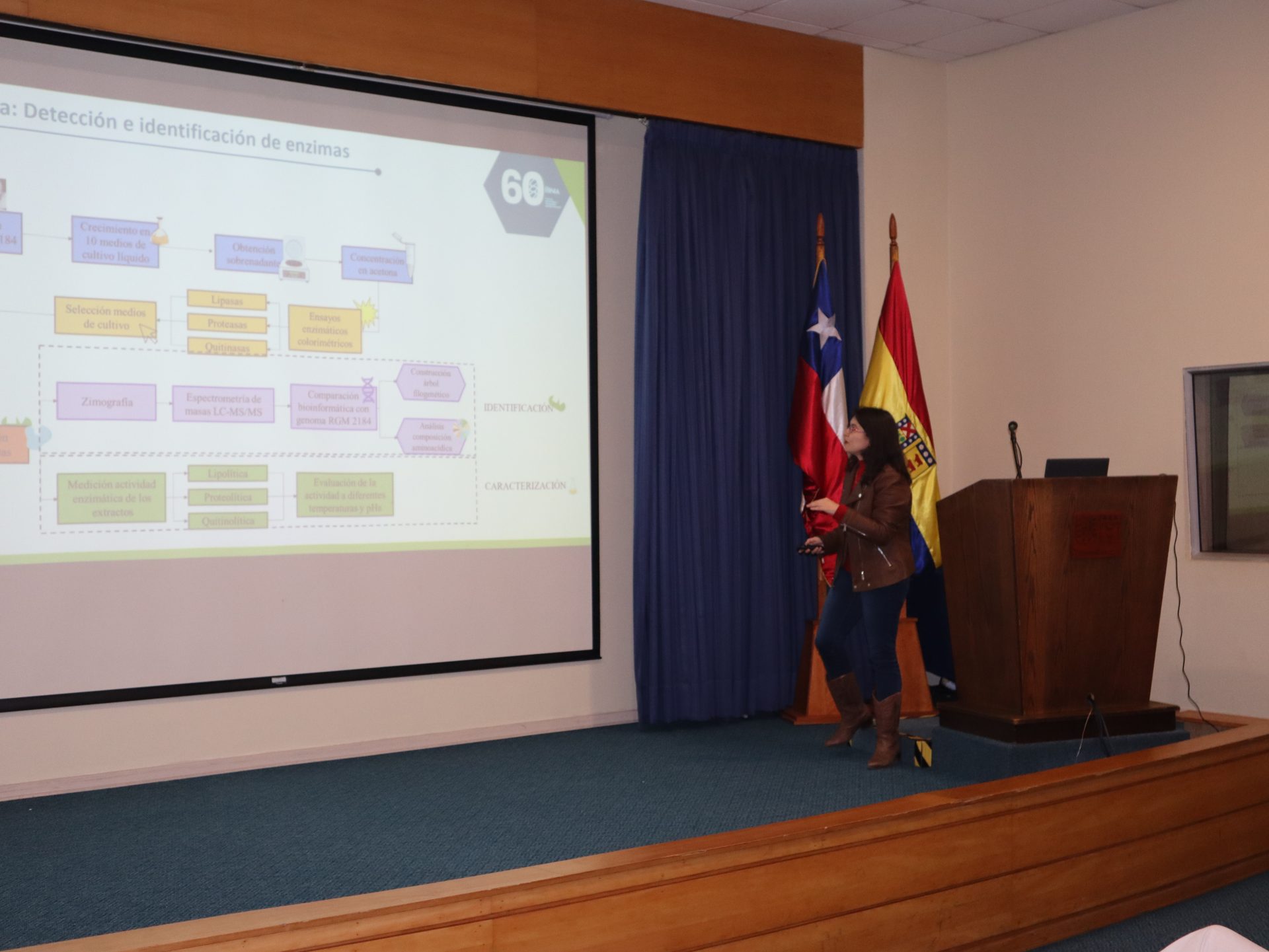 Por su parte, la Dra. Fabiola Altamirano, presentó su investigación sobre los microorganismos controladores de plagas, enfocándose en los compuestos que estos organismos secretan para combatir plagas agrícolas. En la oportunidad, también destacó la importancia de estos encuentros para establecer vínculos entre profesionales, investigadores y estudiantes, facilitando oportunidades de prácticas y tesis.