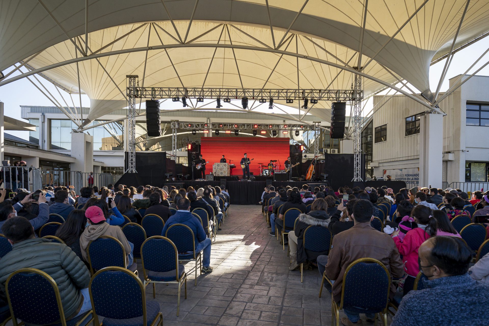 La presentación de la banda se realizó en la Plaza Cívica de la Sede, en el marco de la celebración de los 90 años de la USM y marca el inicio de la 82° Temporada Cultural de la Casa de Estudios en la zona.