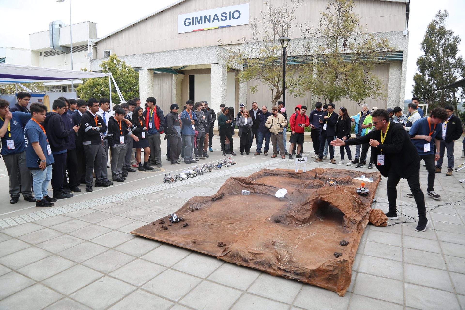 Diego Romero, apoyo docente del Departamento DIMA y uno de los organizadores del concurso, comentó que “este año, el desafío consistía en diseñar y construir un prototipo de vehículo no tripulado, tipo Rover, que debía cumplir la misión de explorar un planeta en el espacio y llevar un objeto magnético desde el punto A de la misión a un punto B de descarga. Para ello se construyó una maqueta que simuló terrenos y obstáculos del planeta Marte”.
