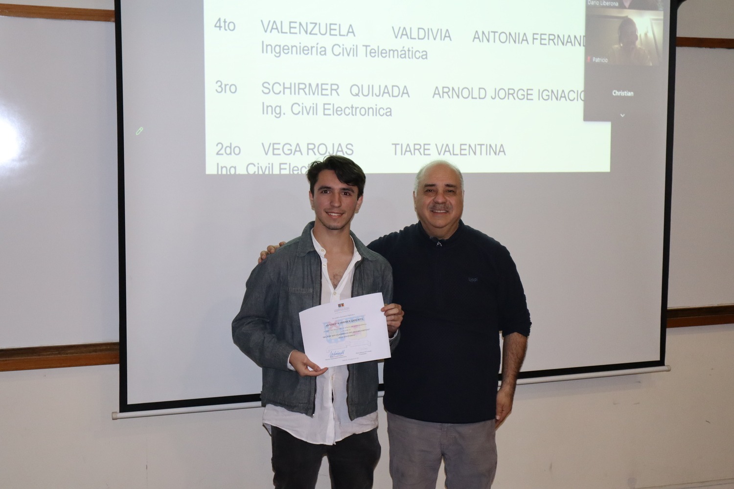Quien se refirió a la importancia de esta iniciativa fue Werner Creixell, Director del Departamento de Electrónica, manifestando su orgullo “porque tenemos gran talento de jóvenes esforzados que se han ganado esta beca, están aquí por sus méritos y queremos que sigan aspirando a lograr todos sus sueños”. Además, aprovechó la instancia para agradecer a las distintas generaciones de exalumnos “que son parte de la comunidad de este departamento y una de las fortalezas que tenemos como institución”.