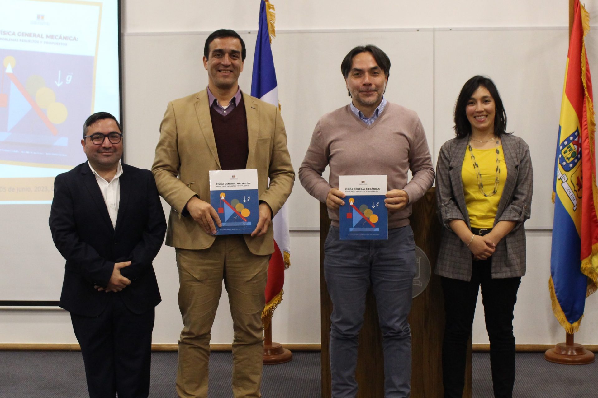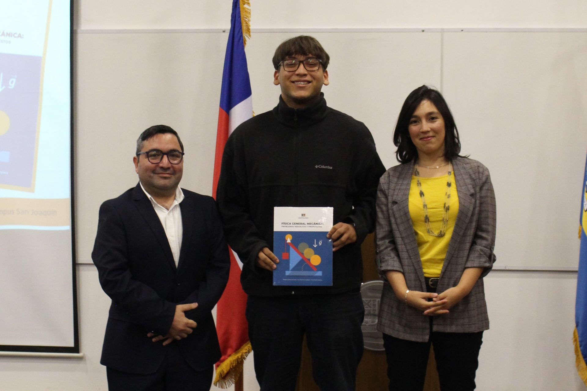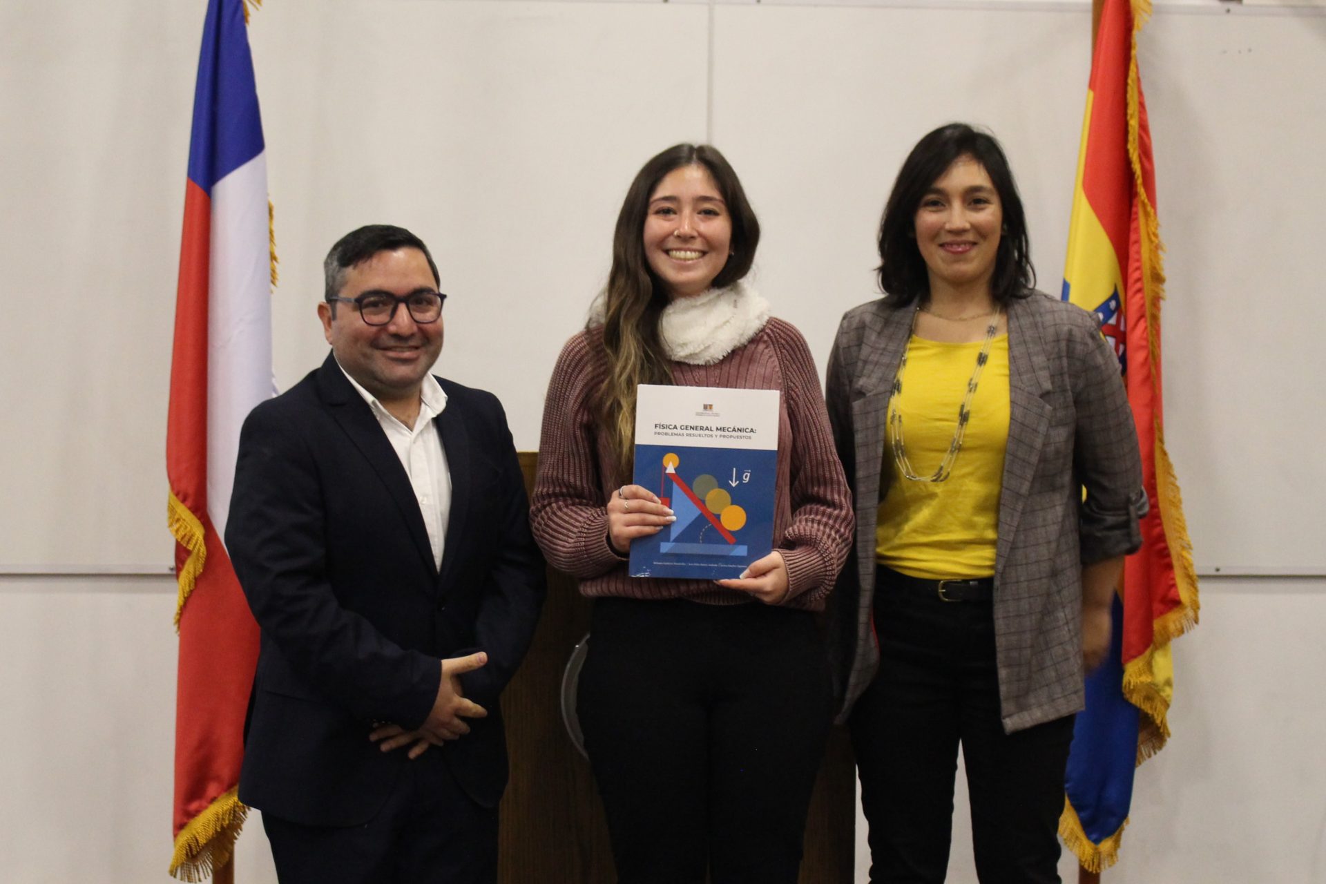 La actividad comenzó con la presentación del libro a cargo del delegado del Departamento de Física, Luis Rosales. “Física General Mecánica es un muy buen texto. Es un trabajo minucioso y un gran complemento al proceso de aprendizaje autónomo de los estudiantes. Sin duda, constituye un acompañamiento efectivo para los estudiantes de primer año, basado en el trabajo de nuestros profesores. Siento un tremendo orgullo de Juan Pablo, Javiera y Belisario por su compromiso con nuestra institución. Muchas gracias por permitirnos contar con un excelente material que sale de la praxis, desde la pasión por la enseñanza”, señaló.