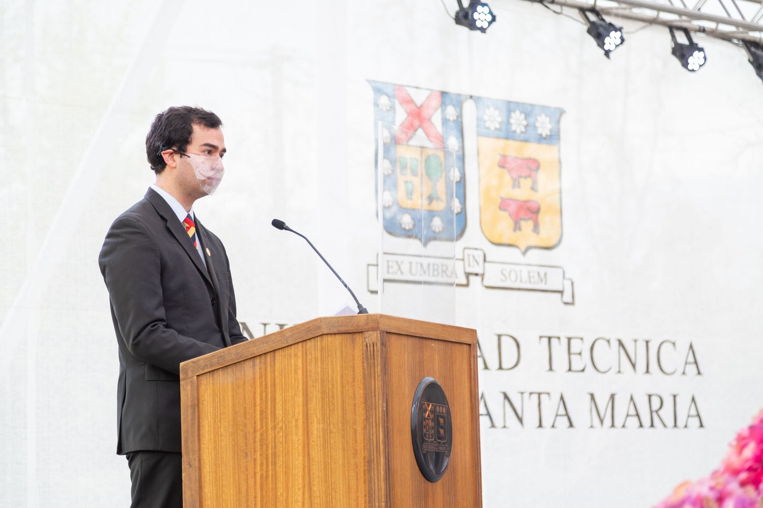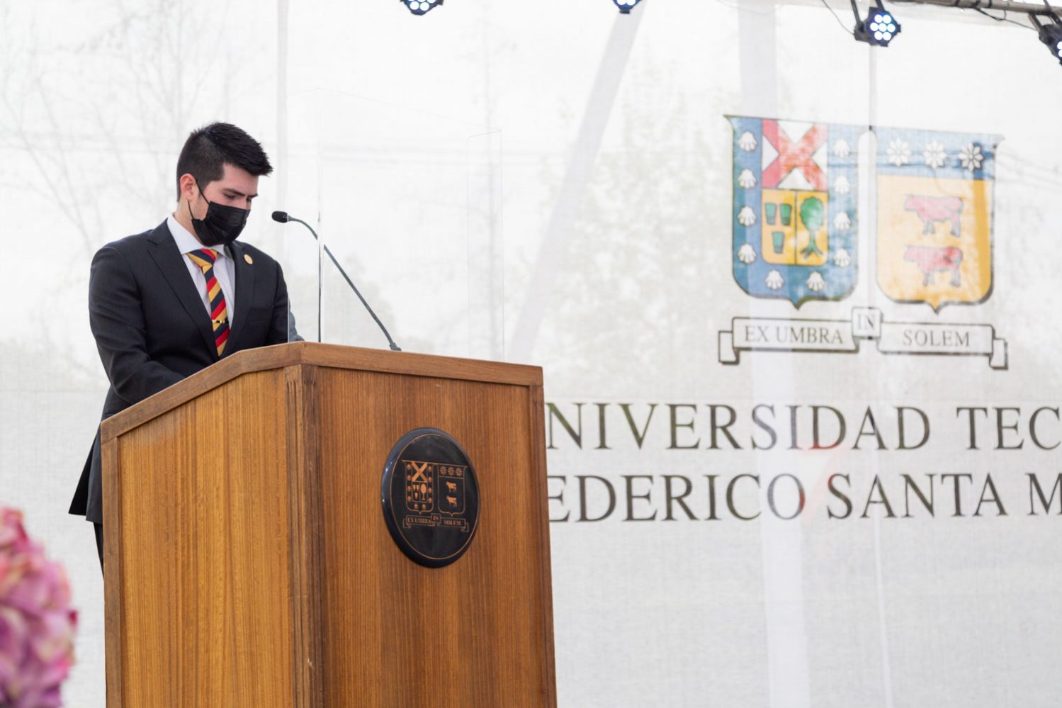 Tras jurar como Ingeniero Civil Industrial y Magíster en Ciencias de la Ingeniería Industrial de la USM, Joaquín Caneo expresó su alegría en un emotivo discurso, realizado en representación de sus compañeros. “Años más, años menos, hemos llegado a este día donde vemos manifestado en un cartón nuestros sueños, esperanzas y ambiciones; hoy recibiremos ese papel que siendo tan pequeño y delgado representa un mundo en sí mismo, donde recogemos las enseñanzas de casi 90 años de historia; donde recogemos el sueño de un hombre, de un gran hombre, Federico Santa María, del que ayer celebrábamos su natalicio número 176”, expresó.