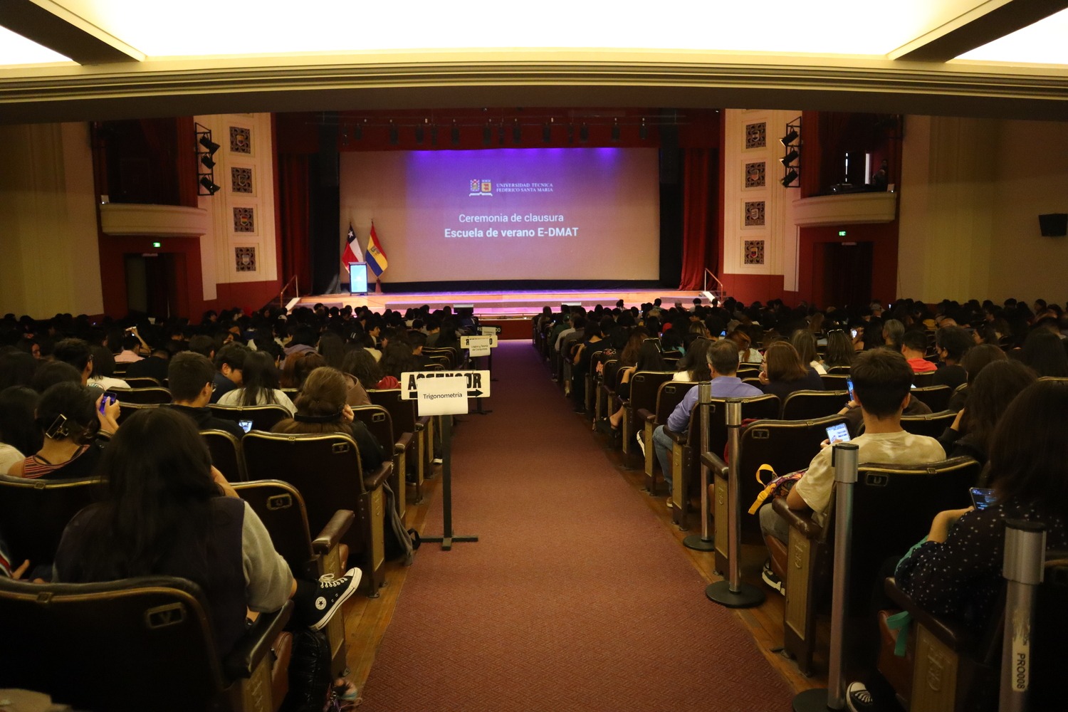 Con dos ceremonias paralelas realizadas en Campus Casa Central Valparaíso y San Joaquín, el Departamento de Matemática de la Universidad Técnica Federico Santa María clausuró su Escuela de Verano E-DMAT 2024. Así puso término a la segunda versión de esta actividad, que reunió escolares de enseñanza media interesados en profundizar sus conocimientos sobre la disciplina asistiendo a cinco cursos dictados por profesores de la casa de estudios.