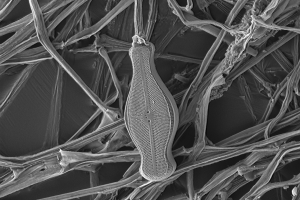 El nombre científico de la microalga, detalló la Dra. Carolina Parra, es Didymosphenia geminata, la que “produce una especie de fibra similar a la celulosa, que también es un biopolímero, y que al incorporarla en una membrana nos ayuda a hacer efectiva la captura de los iones de impurezas presentes en la salmuera”.