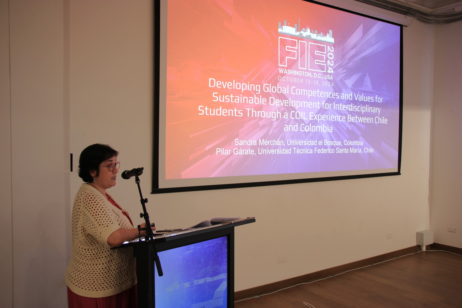 La profesora del Departamento de Industrias María Pilar Garate presentó la iniciativa Experiencia COIL, centrada en el desarrollo de competencias globales y valores sostenibles mediante el aprendizaje colaborativo virtual con otras instituciones de otros países. Finalmente, el profesor del Departamento de Obras Civiles Patricio Catalán cerró las exposiciones con Políticas de Aseguramiento de la Calidad del Magíster en Ciencias de la Ingeniería Civil, un enfoque de mejora continua para la formación avanzada.