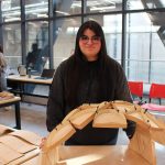 Natalia Burgos, profesora de la asignatura explica que “en este ciclo de experimentación, los estudiantes tuvieron que analizar un caso de estudio que utilizara fabricación digital en madera para su desarrollo. Vieron casos del área de la arquitectura, paneles acústicos, revestimientos flexibles, entre otros. Primero tuvieron que replicar a baja escala estos proyectos, y luego de entender los procedimientos para realizarlo, identificar variables que inciden en su diseño y modificarlas. Por ejemplo, cómo incide el grosor de la madera en el rendimiento de paneles acústicos, o cómo lograr que la madera se curve en la forma deseada utilizando diferentes técnicas”.