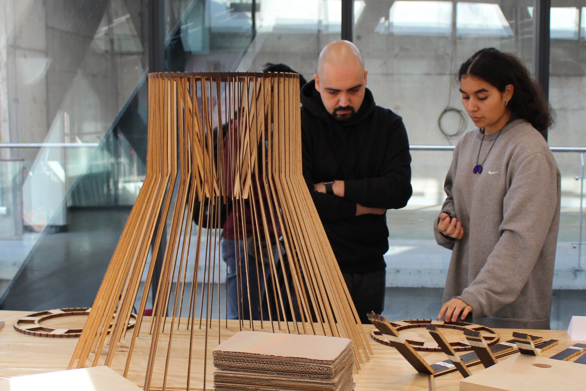 En la actividad, realizada en el Laboratorio de Prototipado de IDP, los estudiantes de la asignatura presentaron sus distintas probetas desarrolladas durante el Ciclo de Experimentación, etapa en la cual los sansanos se enfrentan a un material, en este caso la madera, y comienzan un proceso de trabajo de fabricación digital a través del análisis de un caso de estudio.