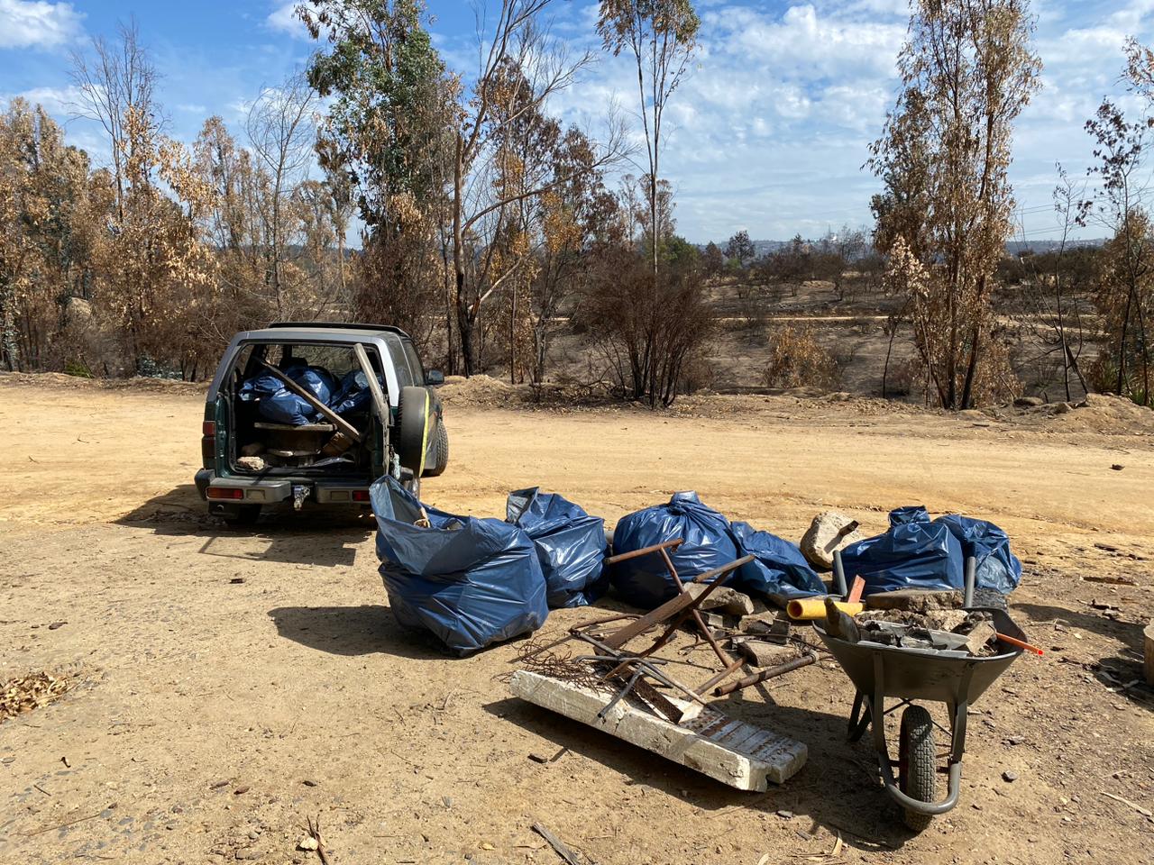 Respecto a la jornada de limpieza, la sansana sostuvo que “trabajamos especialmente en la parte alta del bosque donde tenemos plantados árboles nativos. El sistema de riego que teníamos sufrió mucho con el incendio ocurrido y se quemaron algunas especies arbóreas. Limpiamos todo el entorno de este lugar, porque durante la pandemia ese trabajo no se había hecho”.