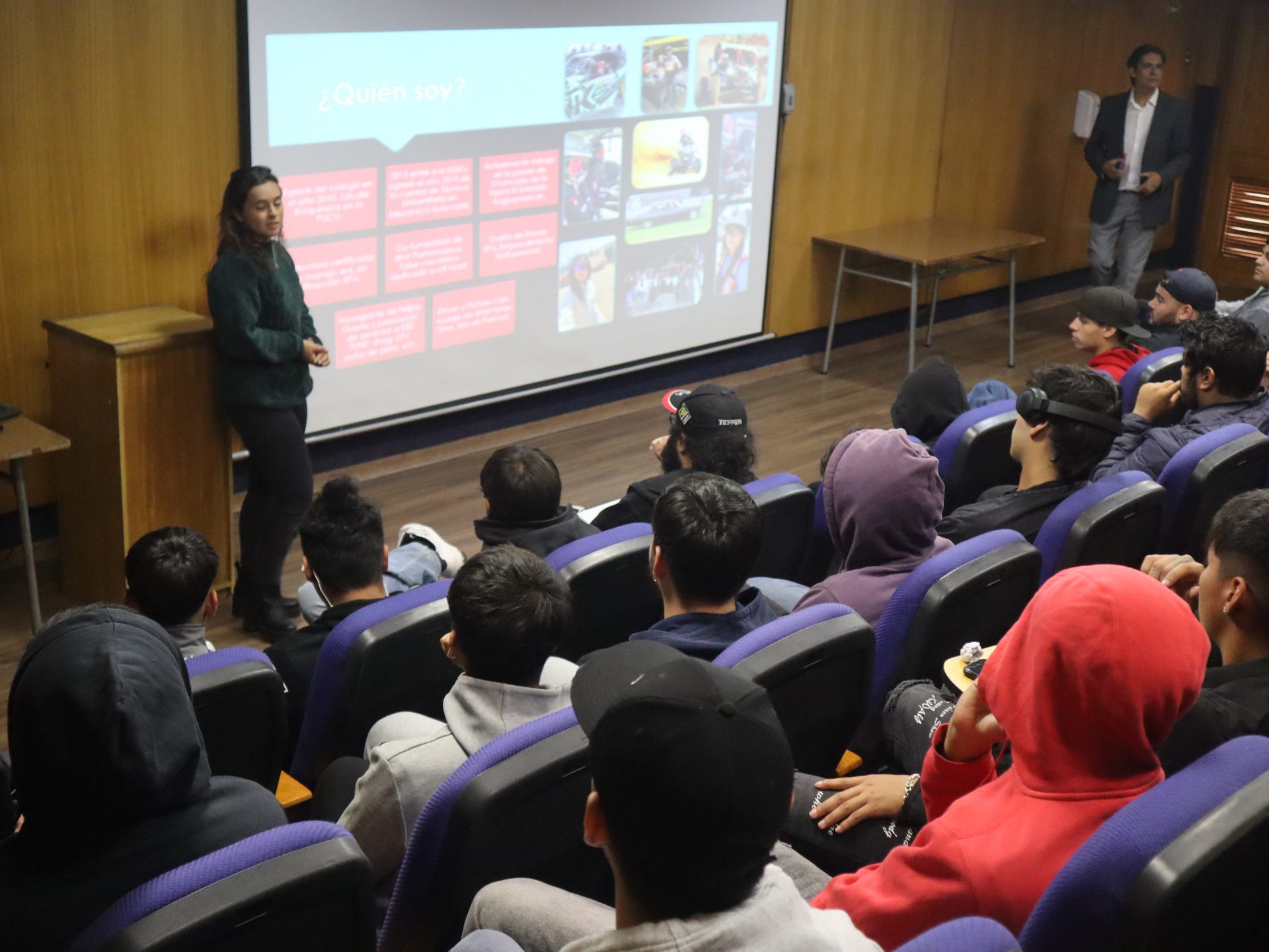 Durante la charla, también se abordó la necesidad de incorporar más mujeres en una industria históricamente dominada por hombres. Una de las expositoras, Daniela Gallardo, egresada de la carrera en 2019, compartió su experiencia. Actualmente trabaja como mecánica de mantenimiento en la planta de chancado de Angloamerican, es escorredora en Rally Cross Country y cuenta con su propio taller mecánico.