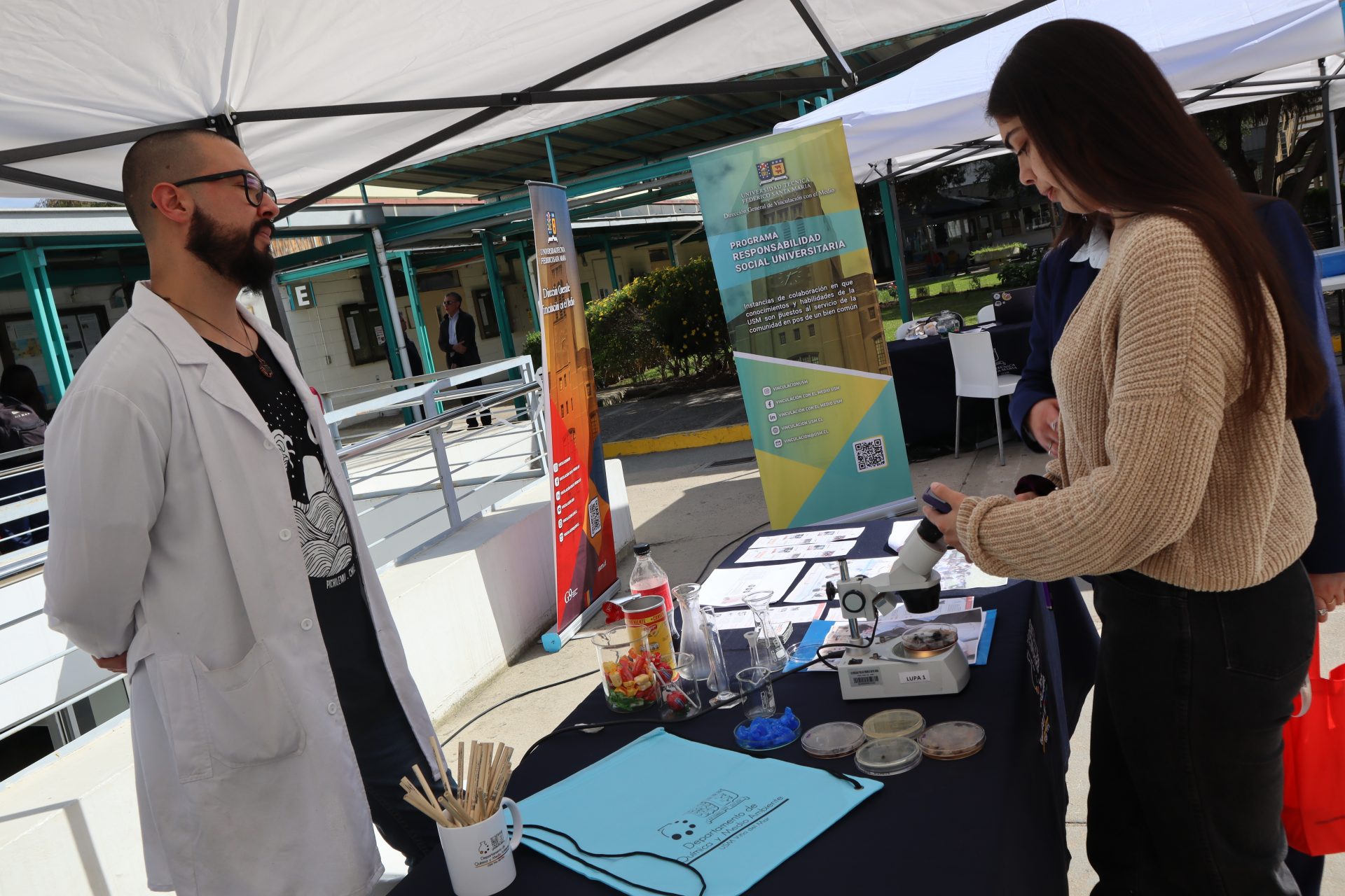 Con una importante participación de la comunidad universitaria, se llevó a cabo la primera Feria de Responsabilidad Social, realizada en el patio central de la sede Viña del Mar de la USM. La actividad, organizada por la Dirección de Relaciones Estudiantiles, reunió a las agrupaciones estudiantiles Ecosansano JMC, CEMPerrunos -dedicada al cuidado y tenencia responsable de mascotas- FabLab, Taller de Encuadernación y Proyecto Bela, además de los monitores de Punto de Encuentro, quienes promovieron la gestión del riesgo en el consumo de sustancias y la prevención de VIH/SIDA, a través de los programas Consciente y Alerta. Igualmente, se hicieron presentes las carreras que resultaron ganadoras de fondos de Responsabilidad Social Universitaria (RSU) de la Dirección de Vinculación con el Medio.