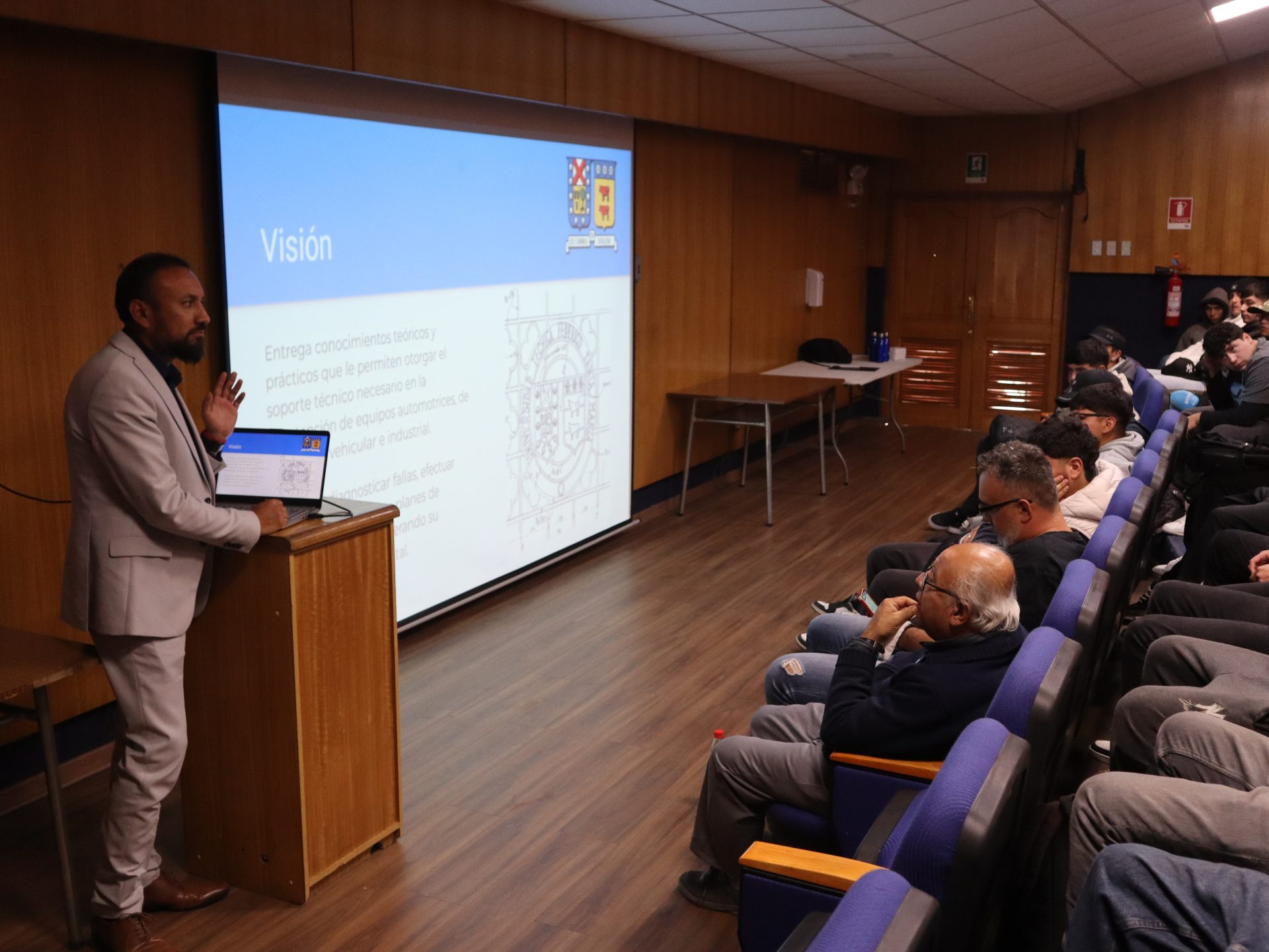Uno de los invitados destacados fue Danilo Sandoval, operador en Colbún y exestudiante de la generación 2003 de la carrera. Sandoval expresó su gratitud por la invitación y su entusiasmo por compartir su experiencia con las nuevas generaciones. “Estoy muy contento de haber estudiado aquí, la universidad me brindó las herramientas necesarias para mi desarrollo profesional en el ámbito laboral, especialmente en el área de la mecánica automotriz”.
