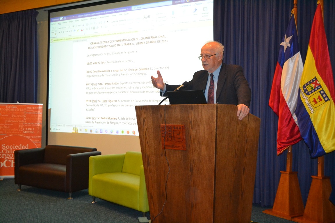 Claudio Acuña, profesor del Departamento de Construcción y Prevención de Riesgos de la USM y organizador de la jornada, agradeció la participación de los panelistas y destacó este nuevo Día Mundial de la Seguridad y Salud en el Trabajo y señaló que “la Organización Internacional del Trabajo (OIT) puso énfasis en el derecho a un entorno de trabajo seguro y saludable y debemos darle la importancia que eso tiene, que se respeten las condiciones de trabajo, de seguridad, y de diferentes situaciones que se están dando luego de dos años de pandemia”.