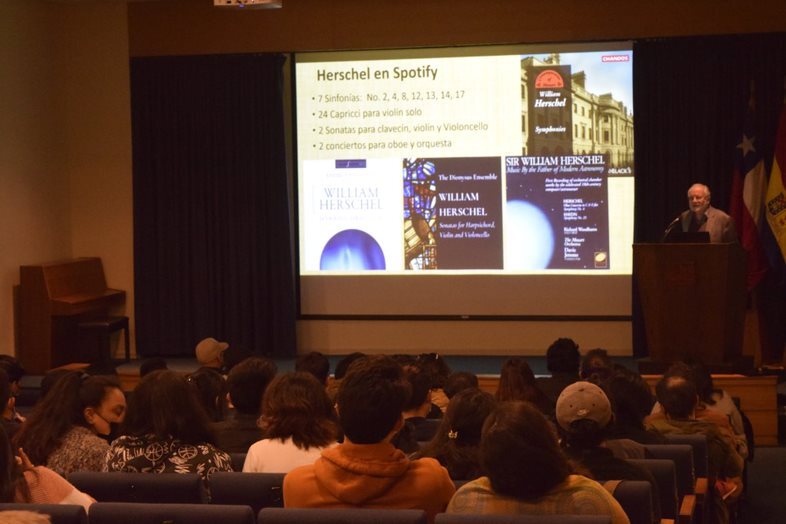 La actividad se inició con la charla del académico USM, Matthias Schreiber, Ph.D in Physics, Georg-August Universität Göttingen, Alemania, quien abordó la temática de planetas extrasolares, donde explicó cómo se conoce la composición química en cuerpos del sistema solar. En una segunda charla el profesor UV Nikolaus Vogt, Doctor en Astronomía Ruhr-Universität Bochum, Alemania, expuso sobre el legado de William Herschell como músico y astrónomo, dando detalles de sus principales descubrimientos, destacando entre estos el hallazgo del planeta Urano.