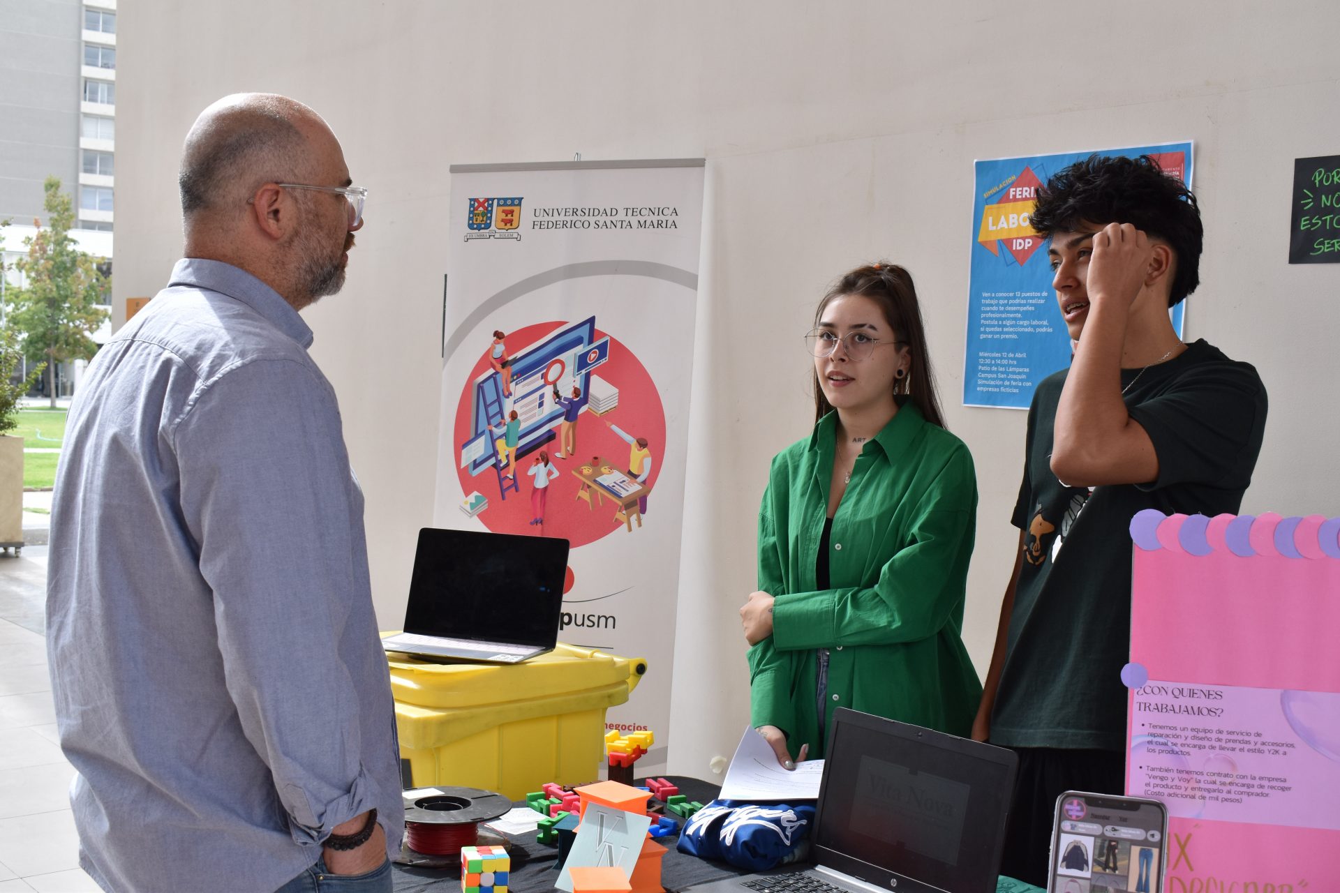 La profesora agrega que se conversó con los estudiantes de cursos superiores y memoristas de IDP, para que participaran de la feria y postularan a los distintos cargos. “La sorpresa que tuvimos es que se acercaron alumnos de otras carreras y también postularon, por lo que fue una buena experiencia para los chicos”, comenta.