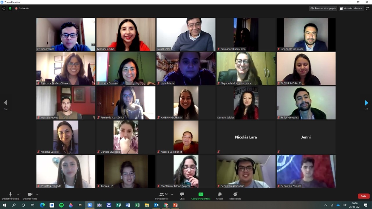 Durante su saludo inicial, el director de Departamento, Rafael Solar, instó a los participantes a mantener el contacto y ser parte de los diversos talleres y actividades que están organizando. “Esta es una instancia para reforzar la intención que tenemos como Departamento para que ustedes tengan un punto de encuentro permanente (…) Queremos que esto se dé, hoy tal vez de manera virtual, por Zoom, pero llegará el momento en que nos demos los abrazos también y que se encuentren con los profesores y con sus compañeros, y podamos mejorar la calidad de vida y nuestras relaciones; tener más oportunidades de empleo. Es super importante, y a lo largo del tiempo ustedes van a ver, que nos transformamos en una gran familia donde siempre que hay un Sansano, busca a otro, así que es bueno no perder esta red”, indicó.