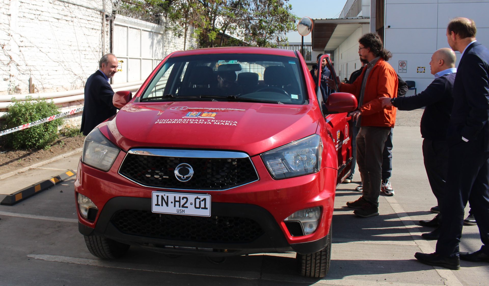 Tras una completa explicación del funcionamiento del Laboratorio de Electromovilidad, así como del proyecto de la camioneta eléctrica, Eric Martin y Daniel Goya probaron el vehículo en las dependencias de la universidad, quedando muy contentos con la experiencia. “Me satisface mucho haber visto la camioneta funcionar. Entendemos que es un prototipo, pero refleja claramente las capacidades del equipo humano que trabaja en estas materias en la USM y el tremendo potencial que hay para seguir trabajando en el desarrollo tecnológico en Chile respecto a electromovilidad con hidrógeno”, explicó Eric Martin.