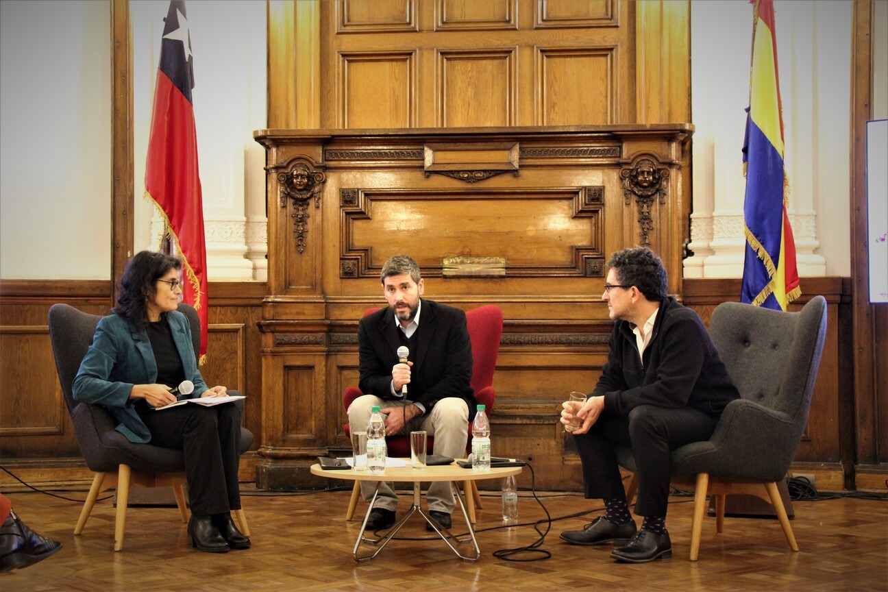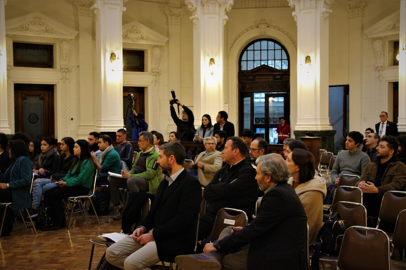 La actividad realizada en el Edificio Federico Santa María contó con exposiciones del asesor en políticas de innovación y desarrollo del Ministerio de Economía, Andrés Zahler, y el gerente de la División Política Monetaria del Banco Central, Elías Albagli.