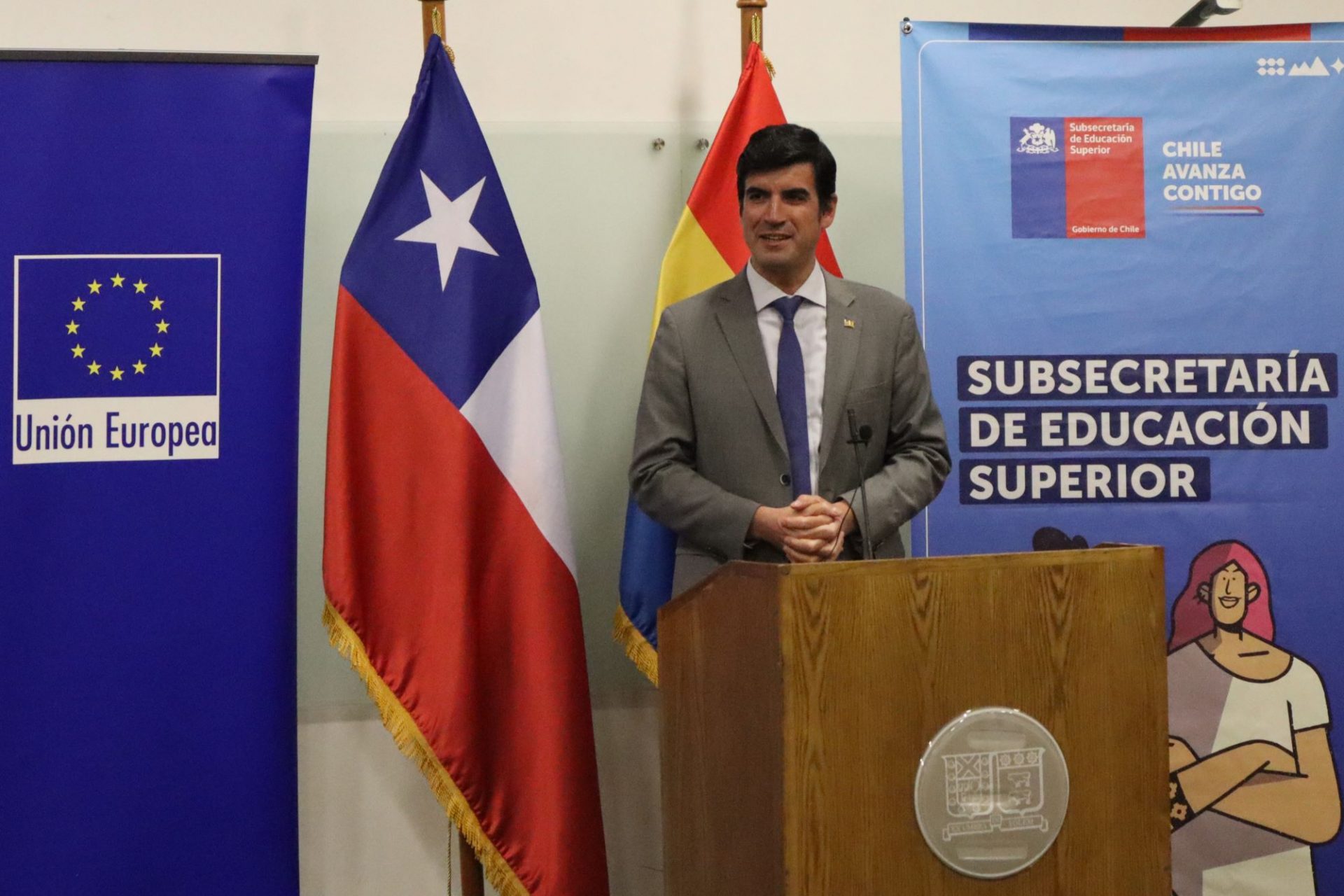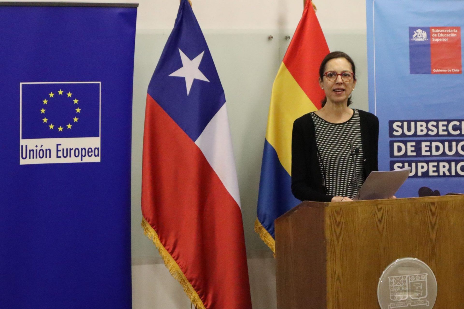 La actividad contó con la presencia del rector de la USM, Juan Yuz; la embajadora de la Unión Europea en Chile, Claudia Gintersdorfer, y el subsecretario de Educación Superior, Víctor Orellana, quienes entregaron palabras de bienvenida a los asistentes.