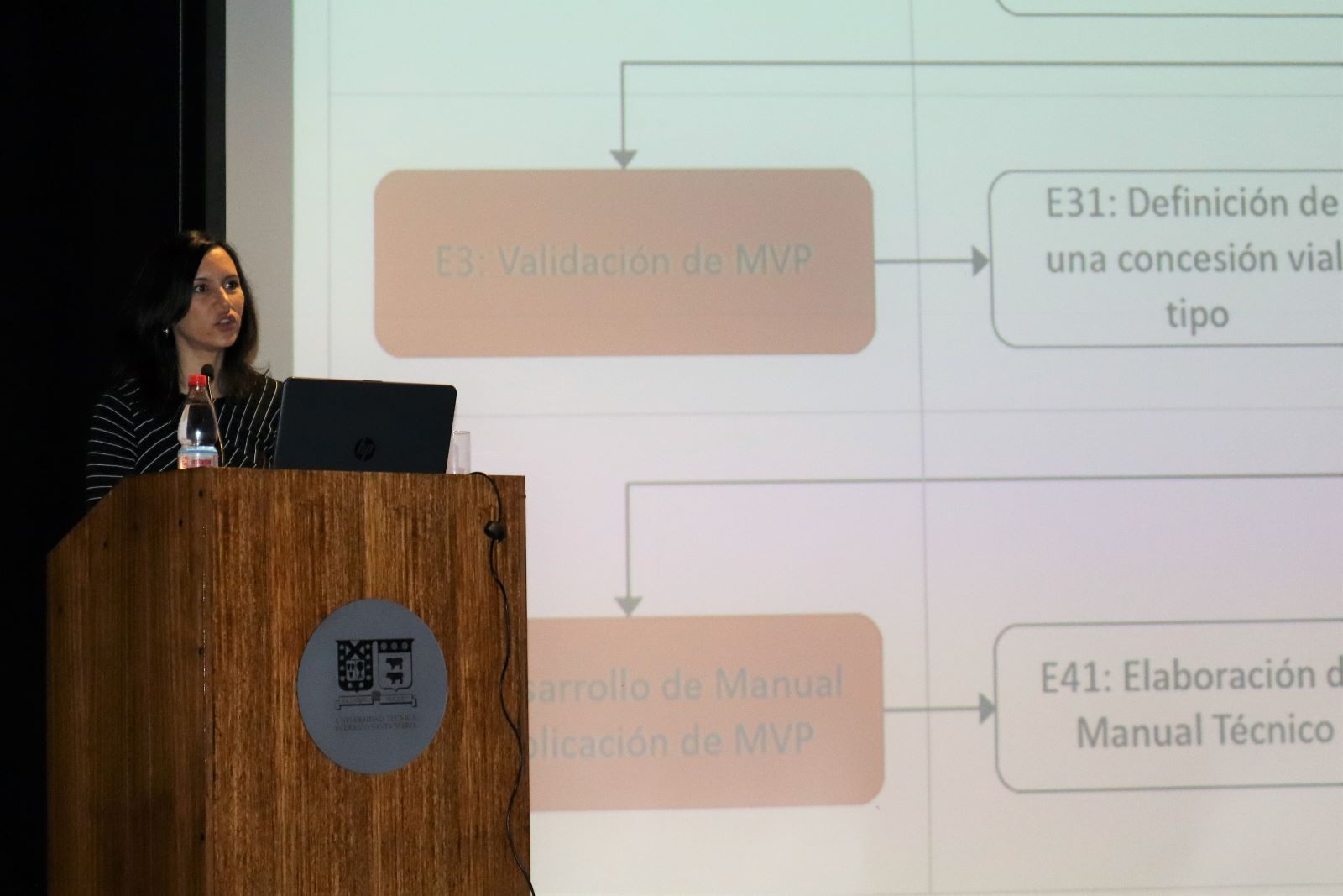 Los principales resultados del proyecto fueron compartidos con los asistentes a través de tres exposiciones: Rodrigo Delgadillo, académico del Departamento de Obras Civiles de la USM y director del proyecto, dictó la charla “La gestión de la operación de una carretera de asociación público- privada”; Alelí Osorio, académica USM y directora alterna del proyecto, expuso la presentación “Modelo de Valorización”, y Tomás Echaveguren, profesor de la Universidad de Concepción, finalizó con “Aplicación del modelo en caso de estudio”.