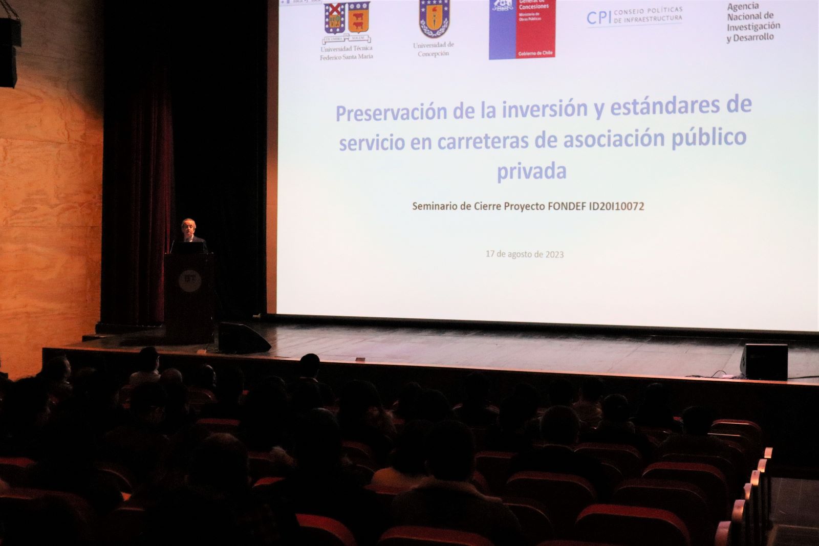 Con un exitoso seminario desarrollado en el Teatro Aula Magna de Campus San Joaquín de la Universidad Técnica Federico Santa María culminó el evento de cierre del proyecto Fondef “Preservación de la Inversión y Estándares de Servicio en Carreteras de Asociación Público-Privada”, liderado por el Departamento de Obras Civiles de la USM.