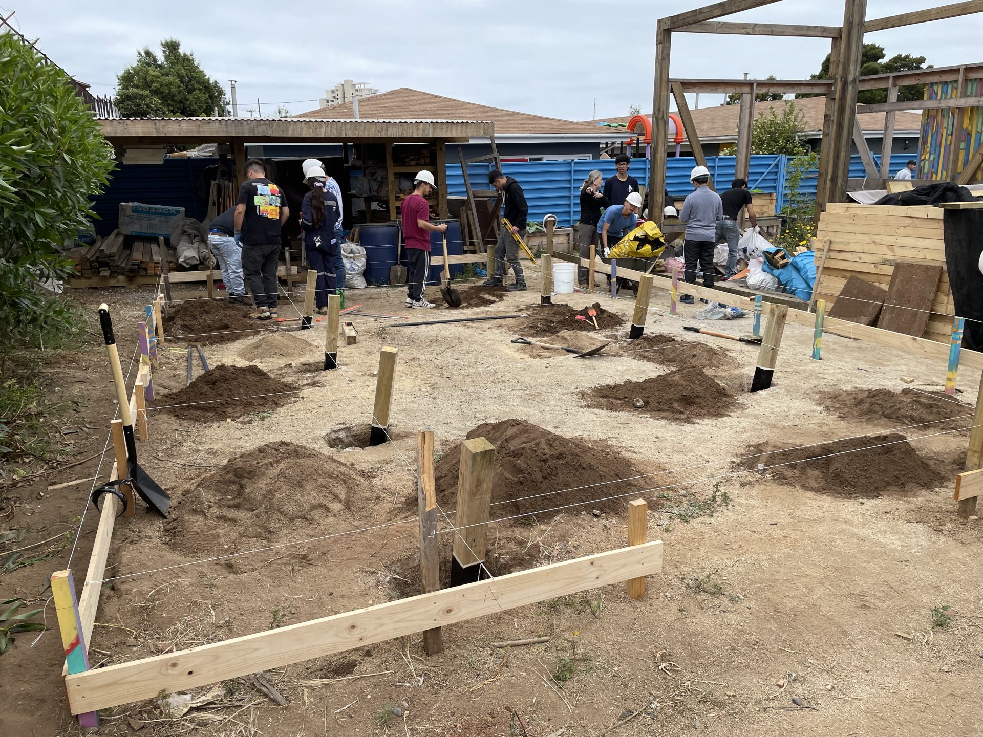 Tras este hito, se llevó a cabo un taller de cierre en el sitio de montaje, donde tomaron parte los profesores Ximena Rozas y Bruno Piazze y el apoyo docente de la carrera, Esteban Atenas. Además, 25 alumnos de la carrera de Técnico Universitario en Construcción participaron activamente en tareas de limpieza de terreno y construcción de las fundaciones de los baños en construcción.