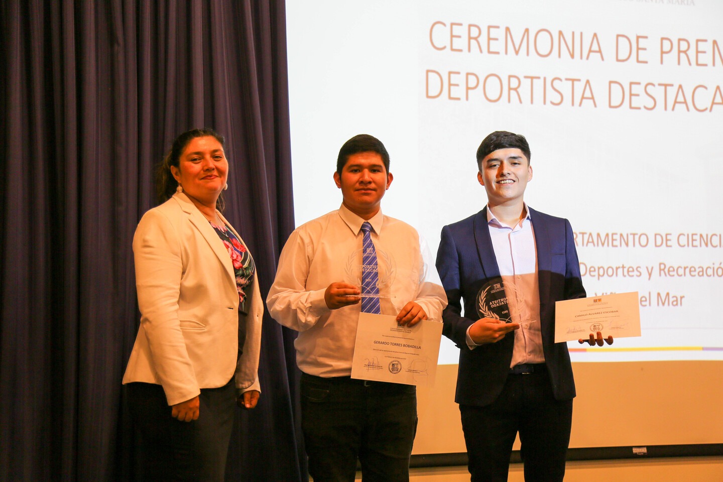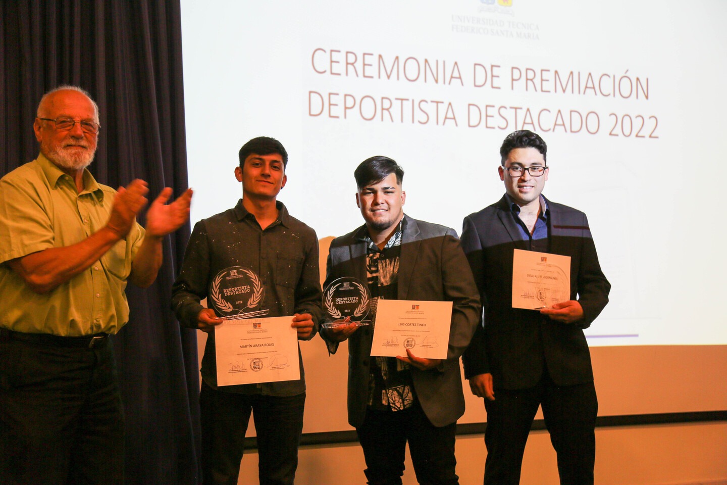Las disciplinas deportivas presentes en la premiación fueron basquetbol, fútbol damas, fútbol varones, tenis de mesa, tenis, futsal varones, balonmano, rugby, voleibol, karate, natación y ajedrez. Además, se destacaron los triunfos obtenidos en los campeonatos regionales y nacionales universitarios de la Federación Nacional Universitaria de Deportes (FENAUDE), con primer y segundo lugar en karate, coronándose como campeones egionales, así como tercer lugar en tenis de mesa, y segundo lugar en el torneo Liga de Educación Superior en básquetbol.