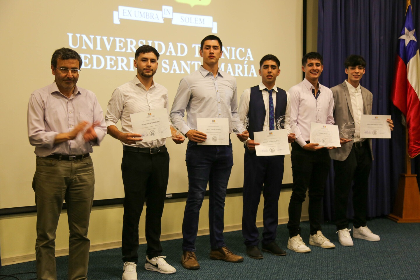Una de las estudiantes destacadas fue Daniela Vicuña de la carrera T. U. en Construcción, quien integra la selección universitaria de fútbol femenino, deporte que practica desde pequeña. “Me sorprendió y emocionó harto cuando recibí la noticia de que sería deportista distinguida, me siento súper agradecida con el profesor y mis compañeras por la elección. El fútbol lo juego desde que era niña, pero siempre en selección de colegio y ahora en la de universidad, no en equipos externos; pero me encanta el deporte en sí, la disciplina que se va formando en el equipo y el compañerismo, el apoyo que se recibe de los amigos y compañeros que nos van a ver a los partidos y entrenamientos, la comunicación entre las del equipo, etc. son las cosas que más me gustan del deporte además de poder tener una buena condición física”.