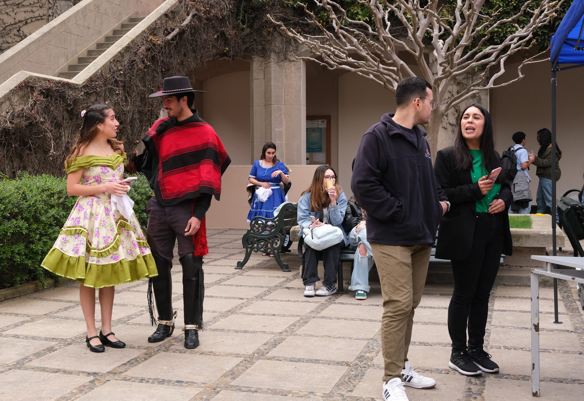 Mientras tanto, en el Campus San Joaquín, las actividades comenzaron con un esquinazo dieciochero en el Patio de las Lámparas, con un baile a la bandera y la presentación del grupo