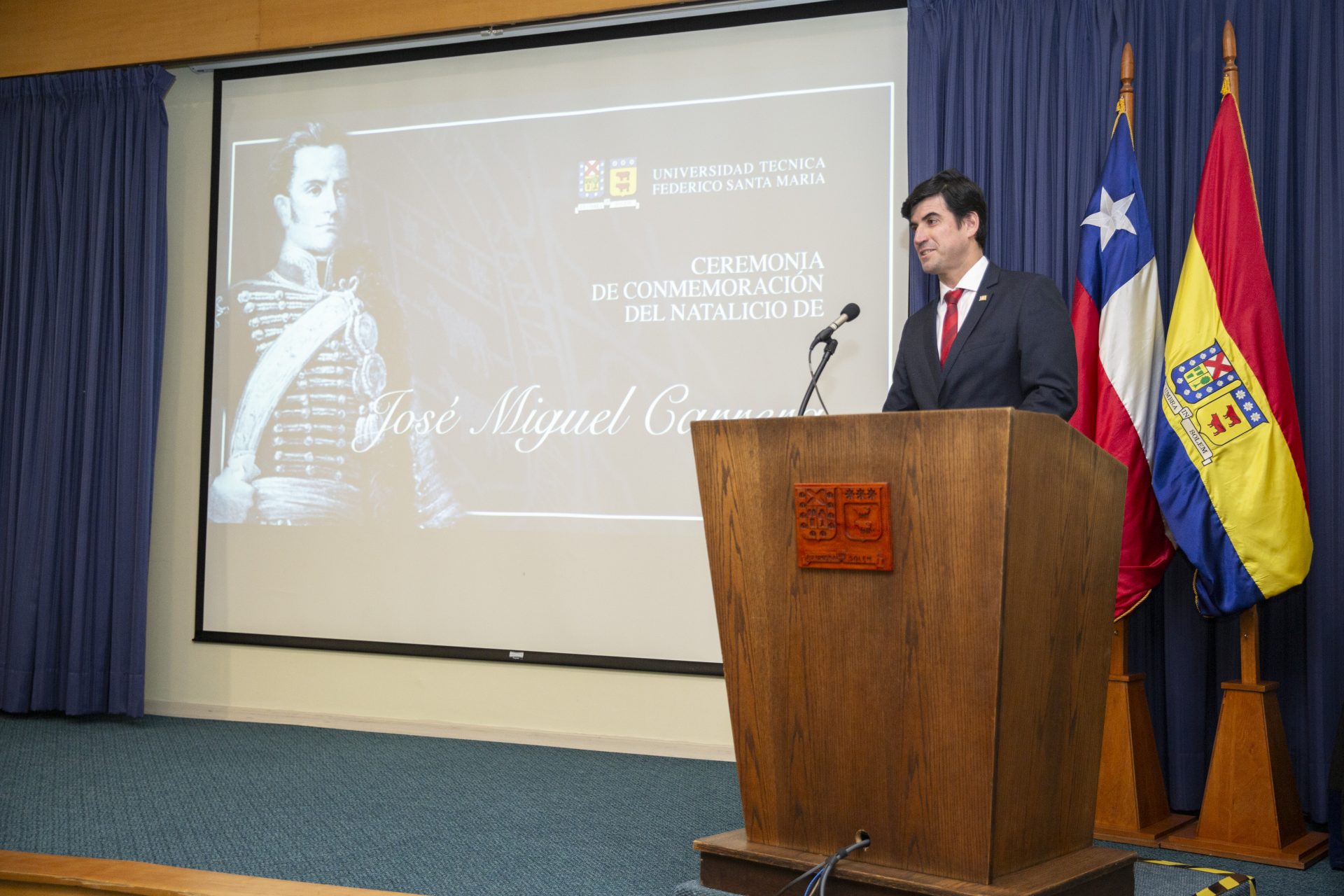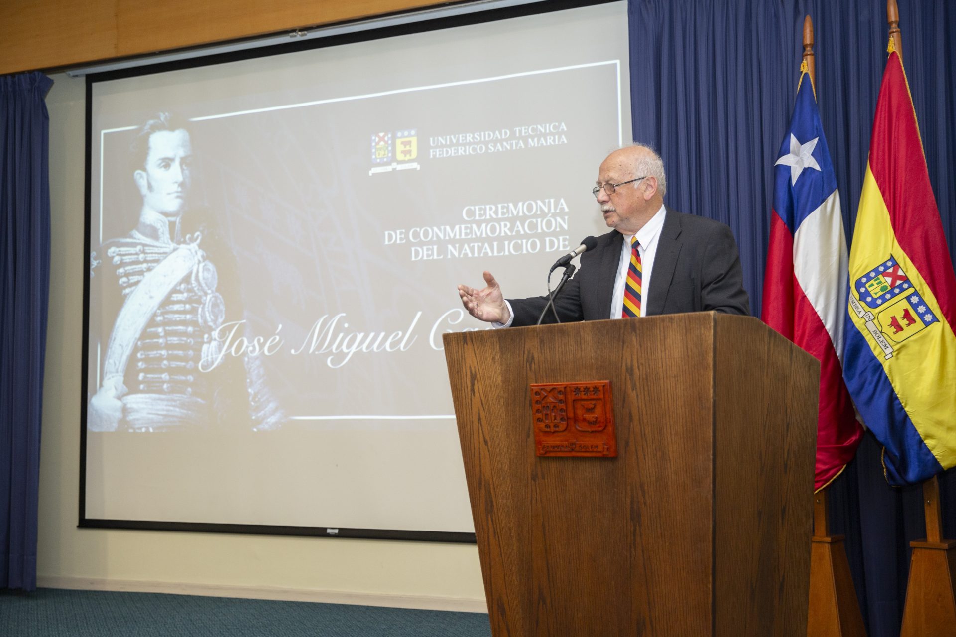 La ceremonia contó con la charla magistral de Arturo Morales, director del Instituto de Investigaciones Históricas José Miguel Carrera, quien dio a conocer alcances de la vida y obra del héroe, destacándolo como un visionario en todos los aspectos. “Me parece notable que la conmemoración del natalicio esté institucionalizada en la universidad, que sea abierta para la comunidad universitaria, para que se recuerde siempre a don José Miguel, quien fue una gran inspiración para don Federico Santa María”.