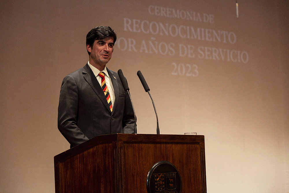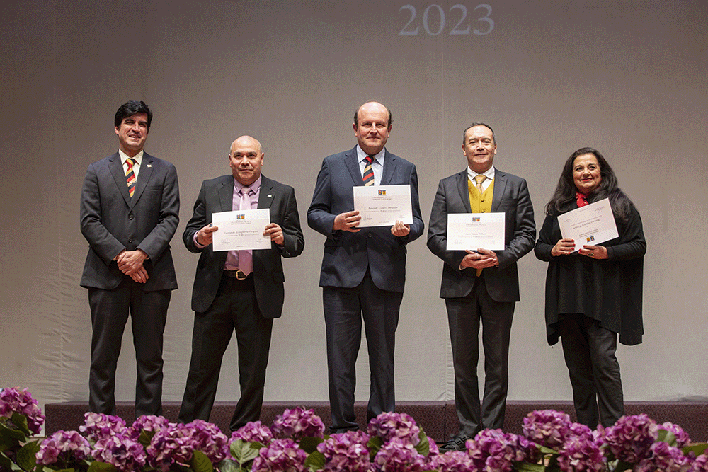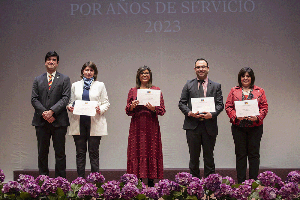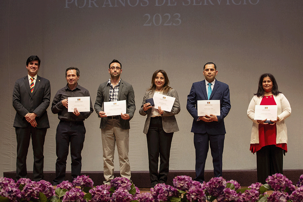 El Dr. Juan Yuz, rector de la USM, entregó las distinciones a cada una de las personas homenajeadas, dedicando también unas palabras al inicio de la ceremonia. “Hoy reconocemos y agradecemos el compromiso y la trayectoria de aquellas y aquellos que han sido pilares fundamentales de nuestro quehacer institucional”, agregando que “han sido testigos de los cambios y avances que nuestra institución ha experimentado en las últimas décadas y, sin duda, han demostrado capacidad de adaptación, profesionalismo y aprendizaje constante”.