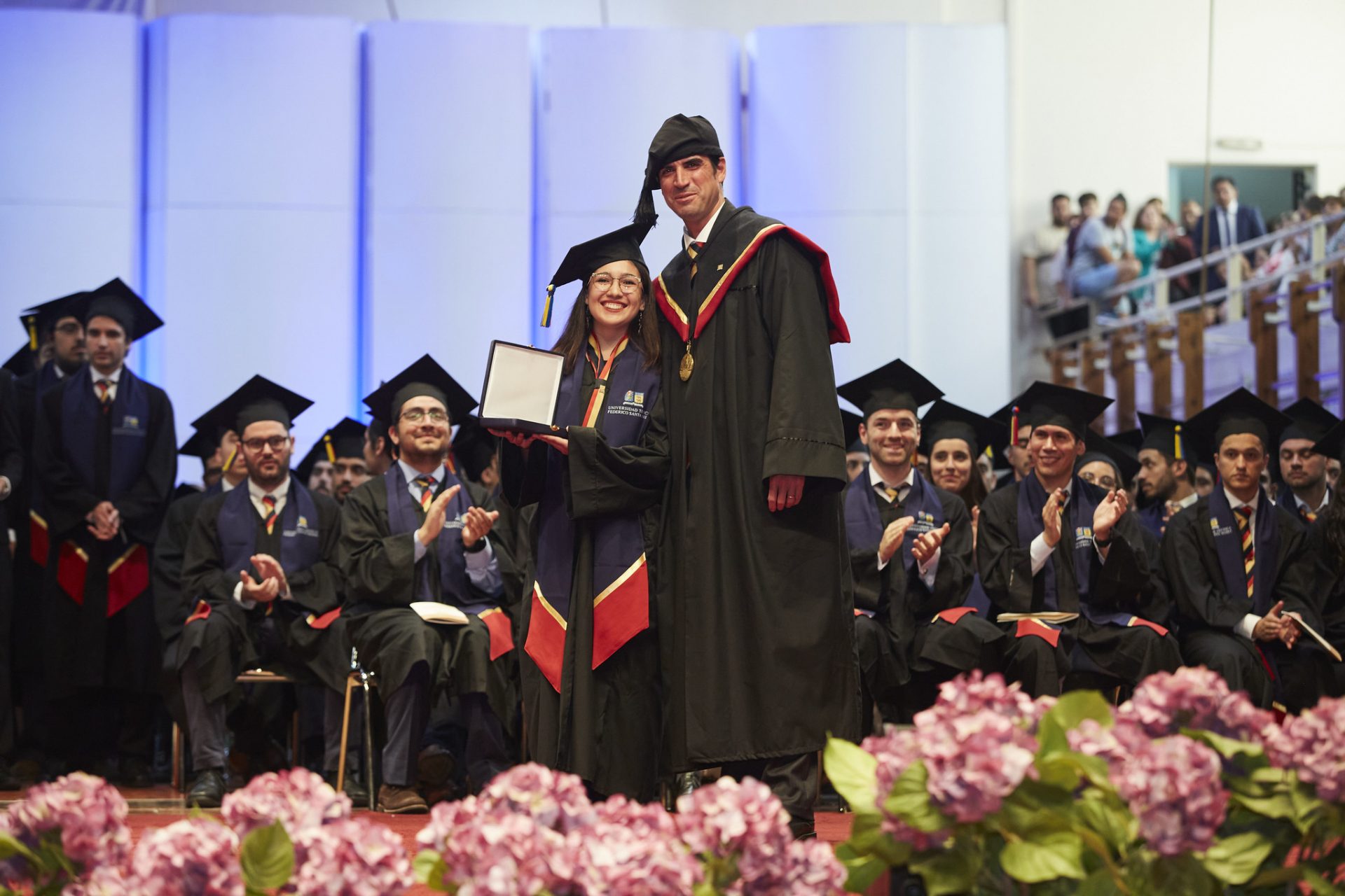 La ceremonia fue encabezada por el Rector de la USM, Juan Yuz Eissmann, junto al Vicerrector Académico, Andrés Fuentes Castillo; el Vicerrector de Asuntos Económicos y Administrativos, Pedro Gajardo Adaro; el Secretario General, Jerome Mac Auliffe Franklin; el Director General de Campus Casa Central Valparaíso, Manuel Cabrera Contreras; el Director General de Campus Vitacura, Víctor Albornoz Sanhueza, y el Director General de Campus San Joaquín, Erwin Hernández Hernández, además de directores y jefes de carrera de los distintos departamentos de la Universidad.
