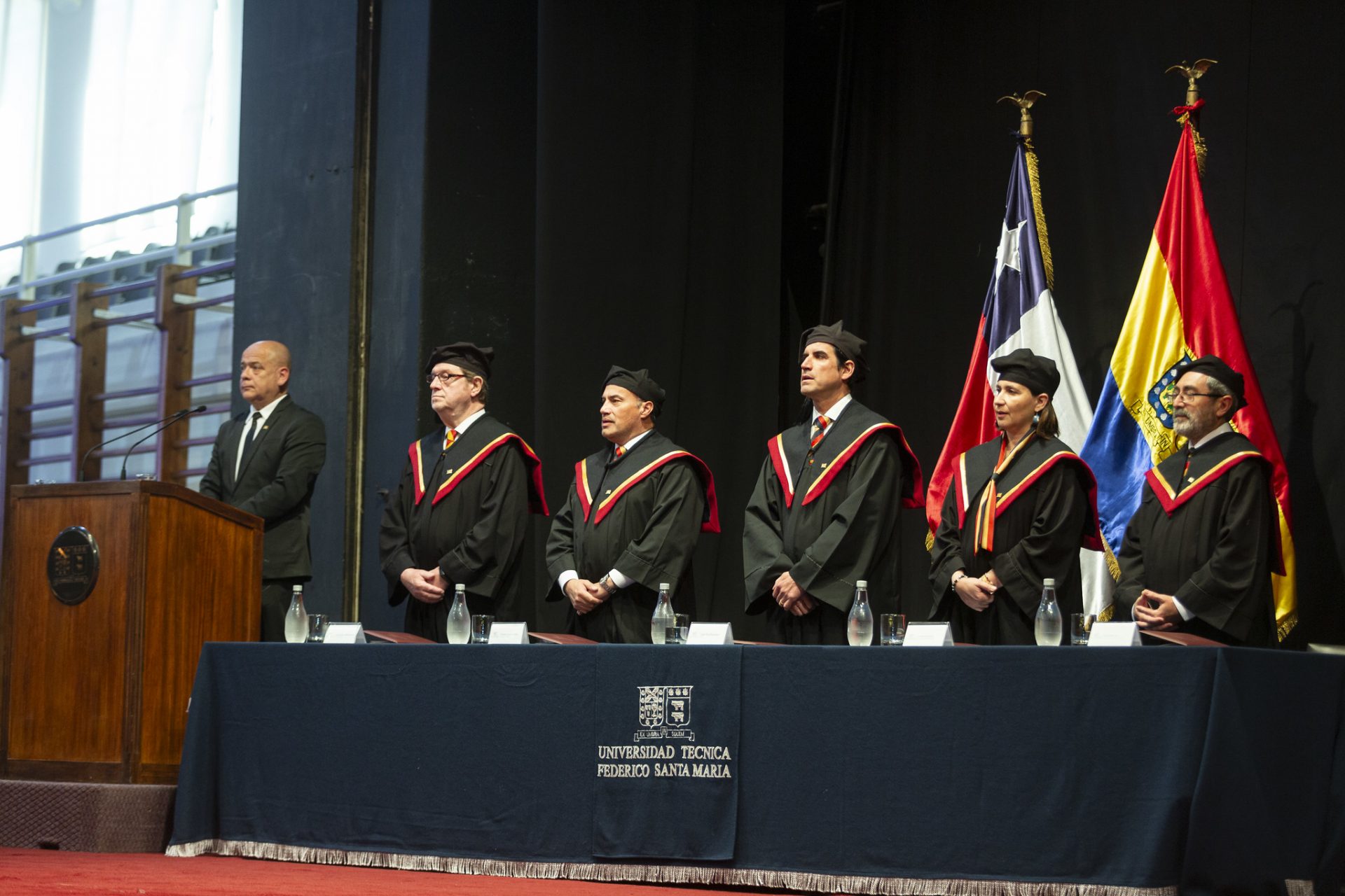 La ceremonia fue encabezada por el rector de la USM, Juan Yuz Eissman, acompañado por el vicerrector académico, Andrés Fuentes Castillo; la directora general de docencia, Catherine Tessini Ortiz; el secretario general, Jerome Mac Auliffe Franklin, y el director general de Campus Vitacura, Víctor Albornoz Sanhueza.