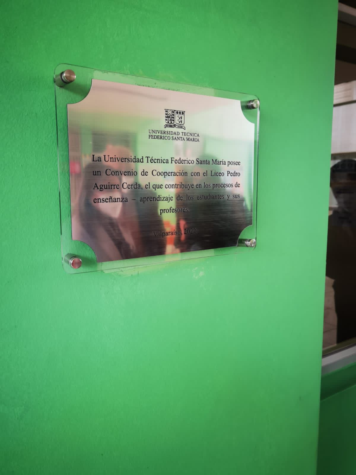 La Universidad Técnica Federico Santa María Sede Viña del Mar oficializó mediante un convenio con el Liceo Pedro Aguirre Cerda de la comuna de Calle Larga, el trabajo colaborativo que ha estado desarrollando desde hace casi tres años. Esta colaboración mutua, ha permitido la realización de talleres y cursos del ámbito tecnológico para estudiantes del establecimiento y espera concretar durante los próximos meses, la creación de un FabLab para el desarrollo de iniciativas innovadoras y que pretende beneficiar a toda la comunidad.