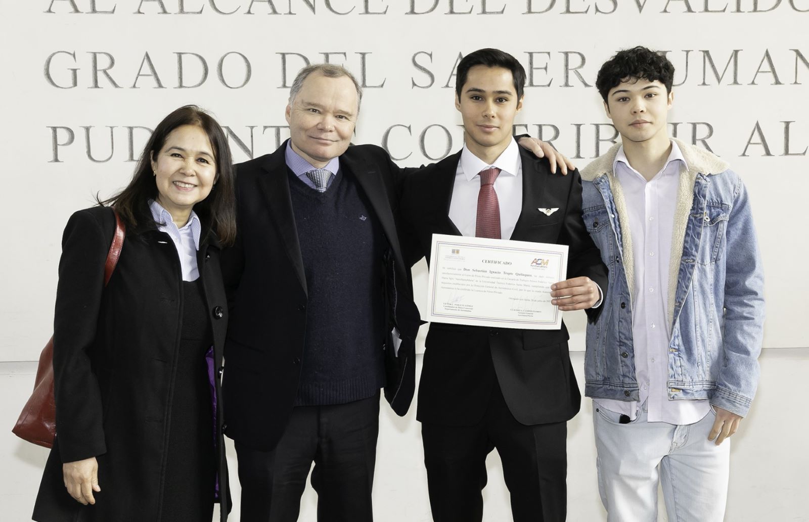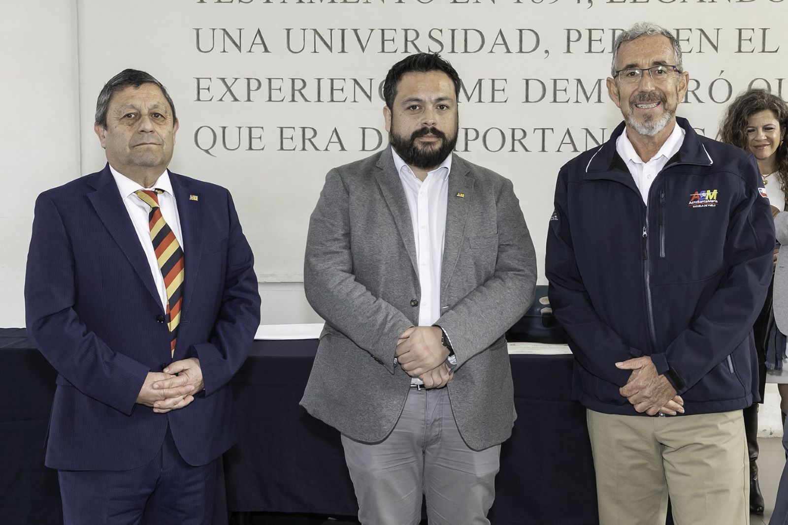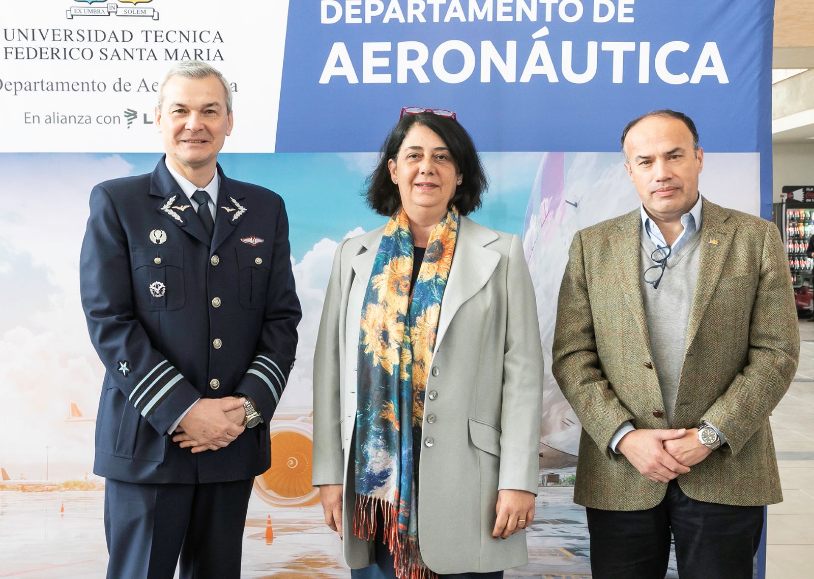 La actividad fue encabezada por el Vicerrector Académico de la USM, Andrés Fuentes; el director general de Asistencia Técnica, Andrés Aránguiz; el Director General de Campus Vitacura, Víctor Albornoz; la Directora del Departamento de Aeronáutica, Anamaria Arpea, y el Director de la Dirección General de Aeronáutica Civil, General de Aviación Raúl Jorquera, acompañados por representantes de empresas del rubro aeronáutico, profesores, funcionarios, estudiantes y sus familias.