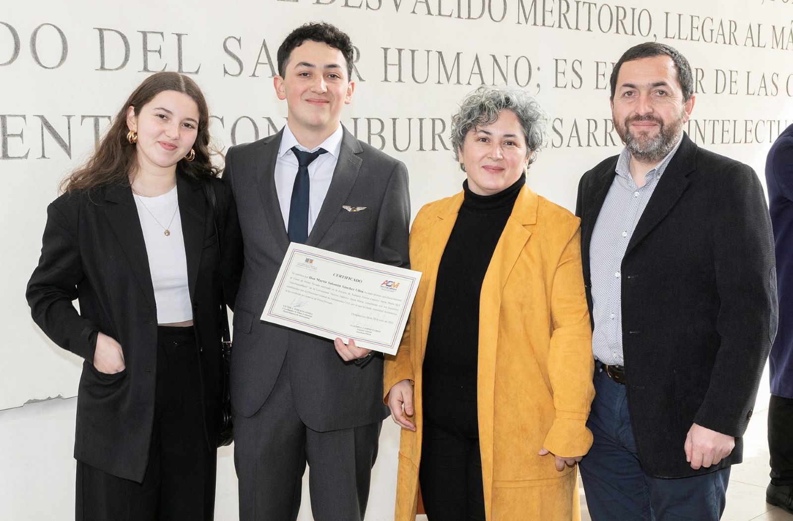 Tras las distinciones, el sansano Andreas Lindinger, del Curso de Formación de Piloto Comercial, entregó unas palabras en representación de los alumnos que culminaron con éxito su proceso formativo, destacando que “todos los que estamos reunidos en este salón tenemos algo en común, que nos motiva a seguir adelante: el anhelo de un niño que quería estar donde estamos ahora, viviendo y haciendo realidad nuestro sueño”.