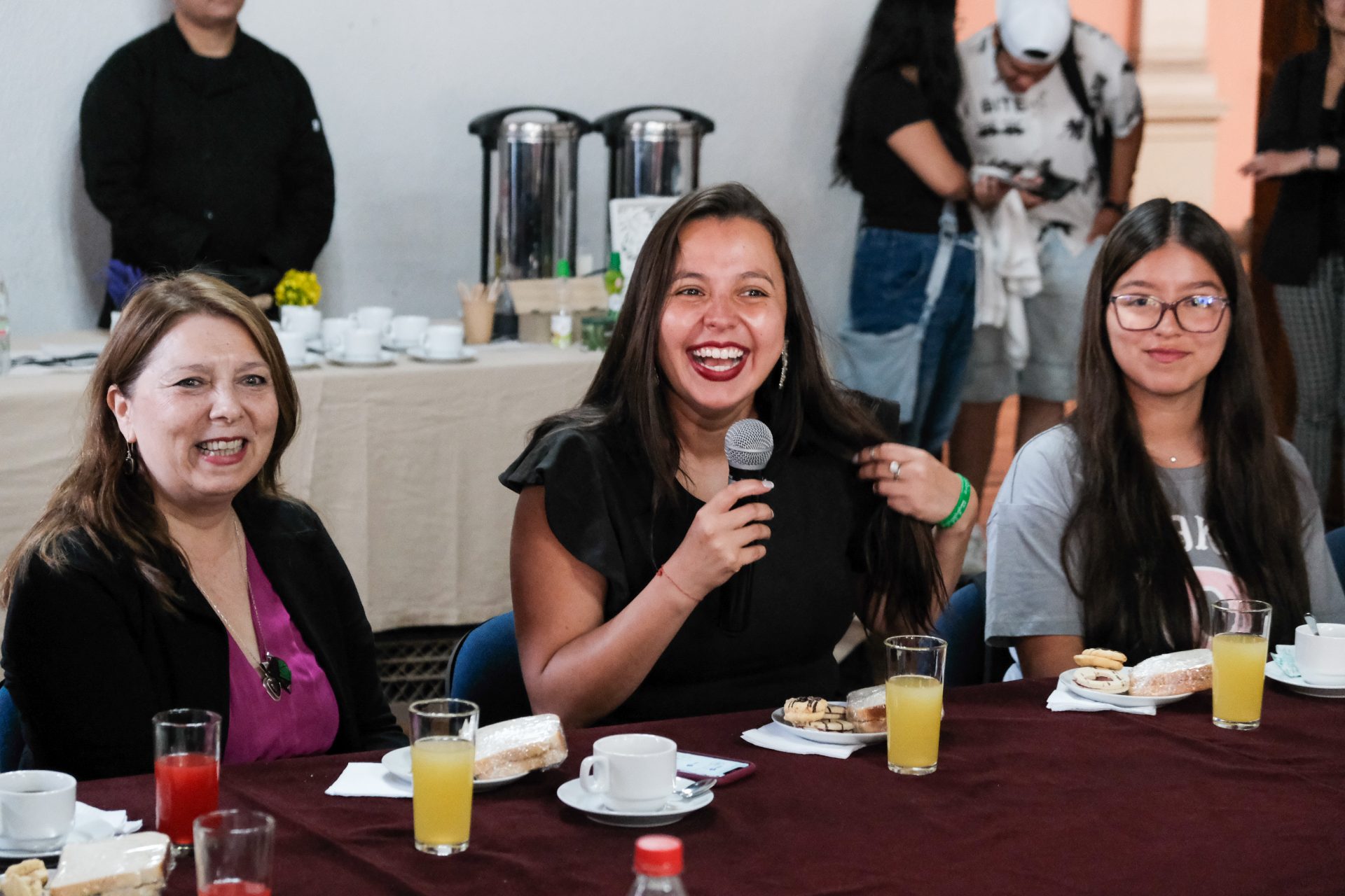 Entre las asistentes al desayuno estuvieron Vania Alarcón, estudiante de Ingeniería Civil Matemática; Agustina Rivas, de Ingeniería Civil Industrial; Joseffa Peralta, de Ingeniería Civil Eléctrica, y Valentina Soto, de Ingeniería en Informática sede Viña del Mar. Todas ellas ingresaron a la USM a través del programa “Más Mujeres Científicas” del Ministerio de Educación. Gracias a esta iniciativa, la casa de estudio ha logrado consolidarse nuevamente como la institución que ha matriculado la mayor cantidad de mujeres en el país, con alrededor de 200 nuevas alumnas. Este programa, junto con otros esfuerzos institucionales, ha permitido que la representación femenina en primer año alcance un 29% a nivel institucional y un 37% en el Campus Casa Central Valparaíso, marcando un avance significativo en la inclusión y participación de mujeres en disciplinas STEM.