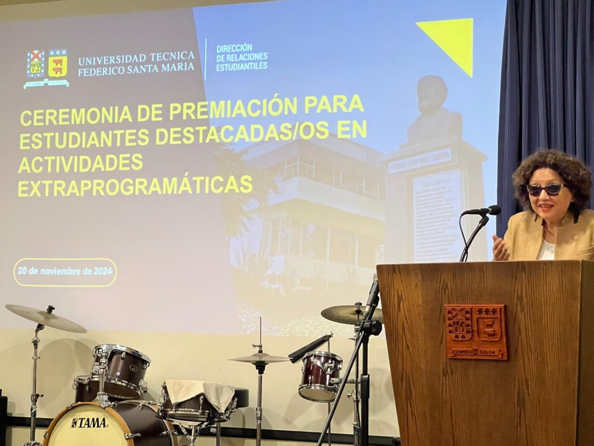 En tanto, Claudia Oyarce, jefa del Departamento de Bienestar Estudiantil, destacó la actividad de reconocimiento a estudiantes “como una de las grandes actividades anuales del área de fomento y desarrollo que permite destacar a estudiantado que se han motivado, participado, liderado y trabajado a favor de iniciativas, actividades y proyectos que complementan enormemente su formación universitaria, promoviendo su desarrollo integral y logrando aportar a su experiencia y trayectoria formativa acá en la Sede Viña del Mar”.