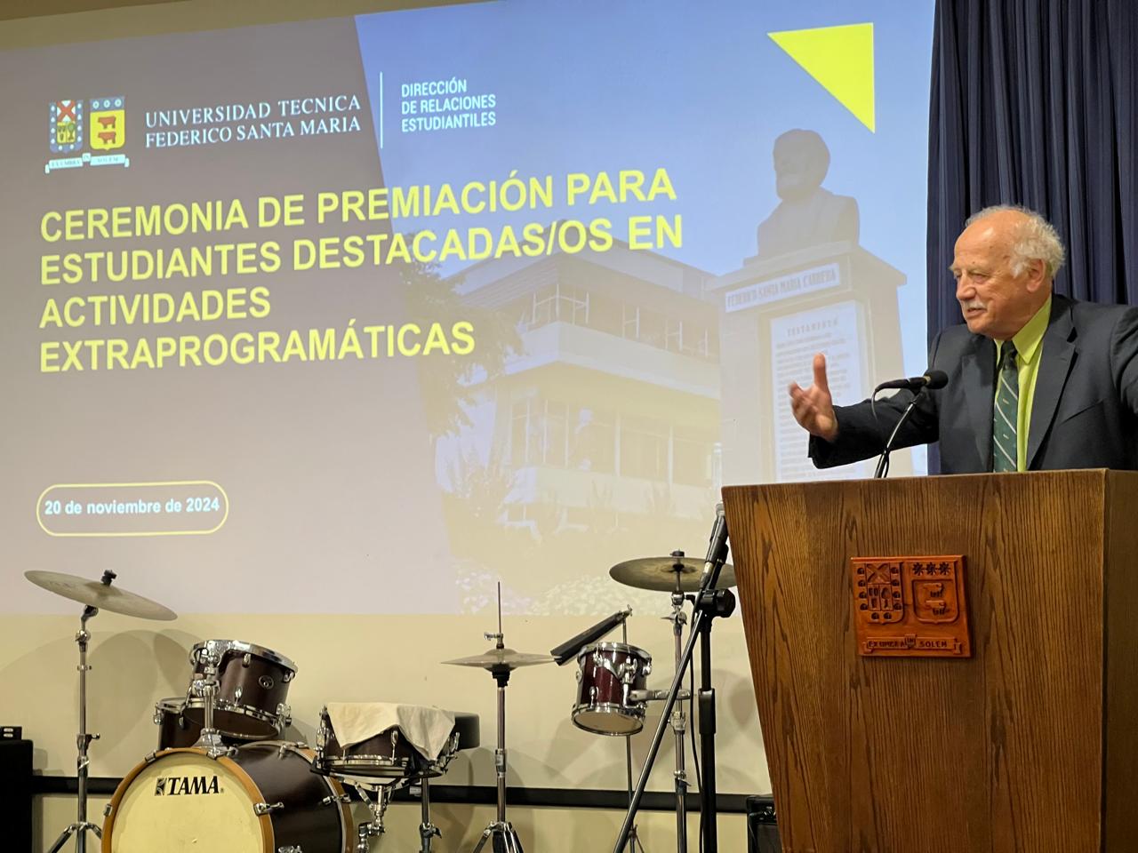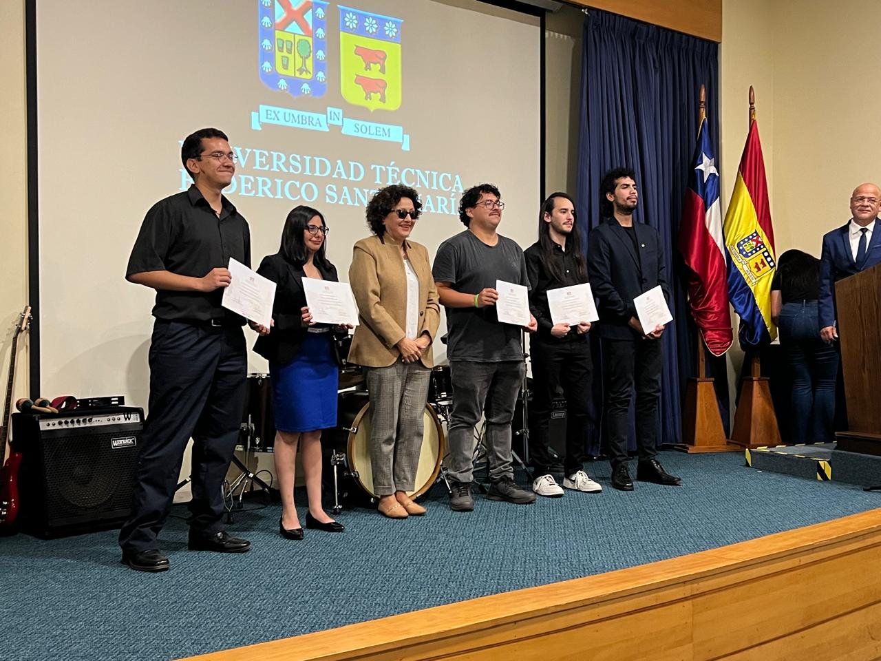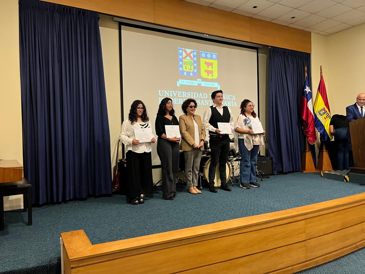 También se reconoció a los miembros de la Sociedad de Debate USM, a los estudiantes que obtuvieron la Beca Formación Digital Mineduc-Huawei 2024, y a las alumnas que se adjudicaron el fondo para apoyo a viajes académicos estudiantiles, con el cual participaron en el XV Congreso de Enseñanza del Diseño en Buenos Aires.