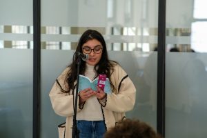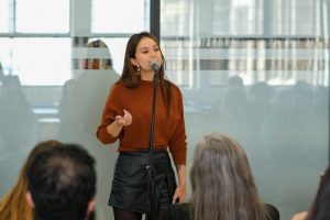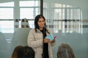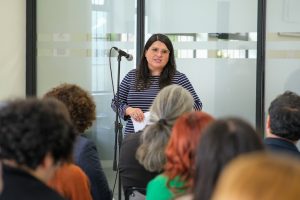 Posteriormente, algunas y algunos de los autores leyeron sus relatos, mientras que otros fueron narrados con la colaboración de la psicóloga del Servicio de Atención en Salud de Relaciones Estudiantiles de la USM, Daniela Cornejo, quien también se desempeña como cuentacuentos.