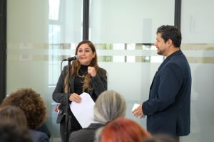 Durante la jornada, además de la presencia de algunas y algunos estudiantes ganadores, asistieron autoridades como la directora general de Asuntos Estudiantiles, Cecilia Reyes, y el encargado de la Editorial USM, Sergio Sepúlveda. “Felicito a todas las autoras y autores que se atrevieron primero a escribir y luego a enviar sus cuentos para que fueran leídos por el Comité Editorial de la Biblioteca. Estos relatos fueron escogidos y publicados con mucho honor por nuestra biblioteca”, indicó Sepúlveda.