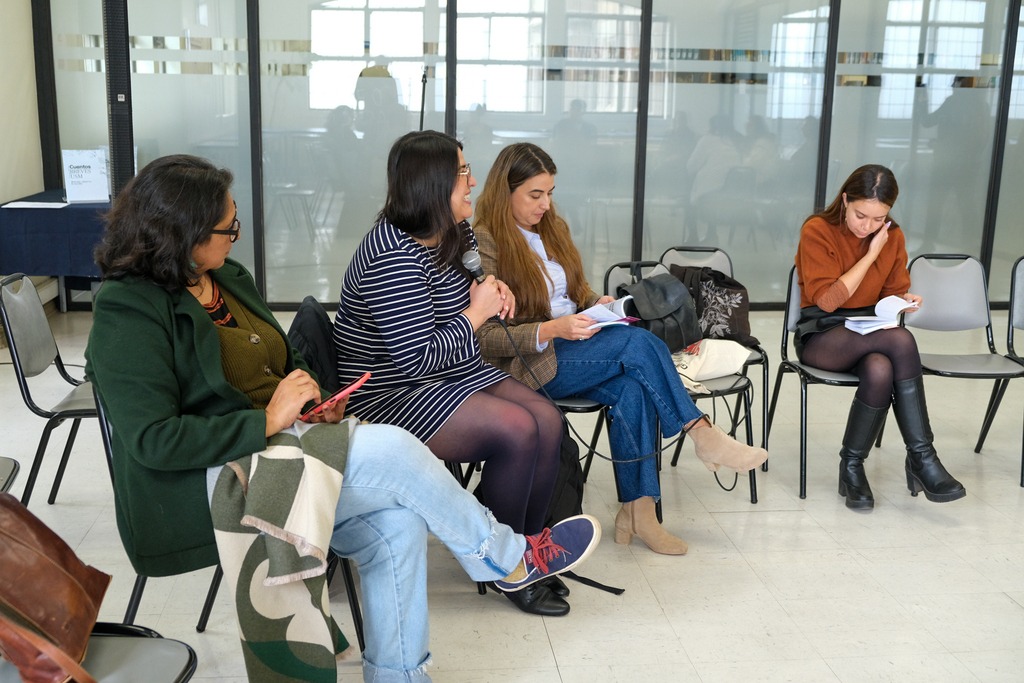 Posteriormente, algunas y algunos de los autores leyeron sus relatos, mientras que otros fueron narrados con la colaboración de la psicóloga del Servicio de Atención en Salud de Relaciones Estudiantiles de la USM, Daniela Cornejo, quien también se desempeña como cuentacuentos.