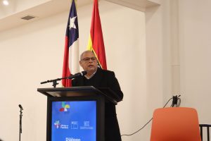 El gobernador de la Región de Valparaíso, Rodrigo Mundaca, también estuvo presente durante el diálogo y agradeció, en primer lugar, a la USM por prestar el espacio para el desarrollo de la actividad, mientras que durante su discurso destacó los esfuerzos que se ha hecho a nivel institucional en pro de la descentralización en el país.